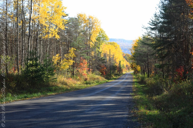 For my last autumn posting this last day of November 2022 this colorful hall of trees is on the long descent of Lacey Road from Cortland to Tioga Counties where it passes close the meeting point of three counties near the Robinson Hollow State Forest, the third being Tompkins County.