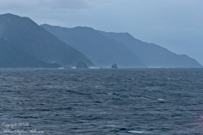While most of our fellow passengers were sleeping, as usual I woke at 5 am to pull the gear together, dress warmly, step out onto our magic window on the world. Our decision to request a port side cabin continues to pay off. The Cape Rapier lighthouse flashes every few seconds. One of these shots caught the light.