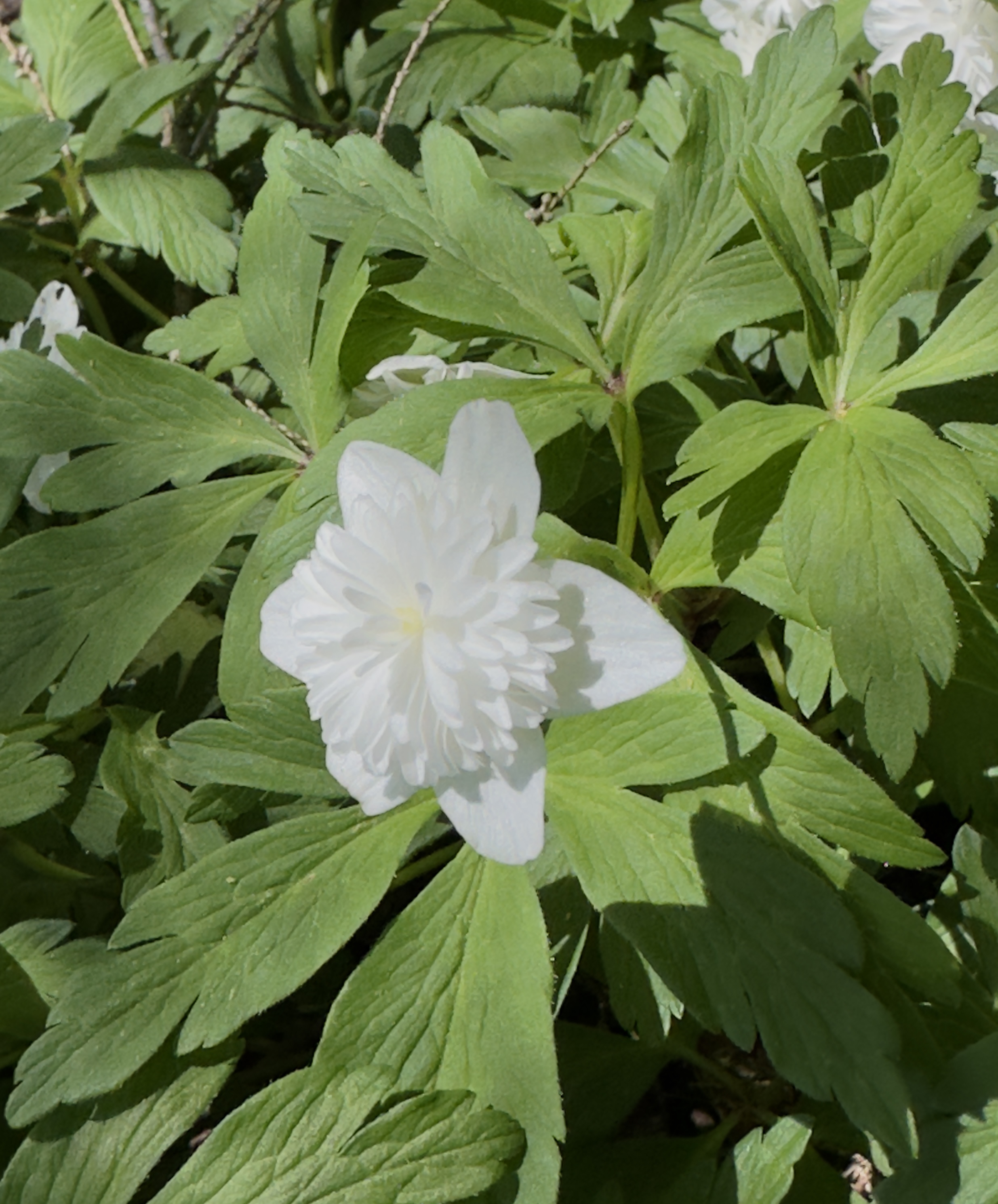 After spreading 15,000 square feet of crabcrass/fertilizer and before attending a frigid first baseball game of a grandson, I capture eight photographs of five different flowers from our home.