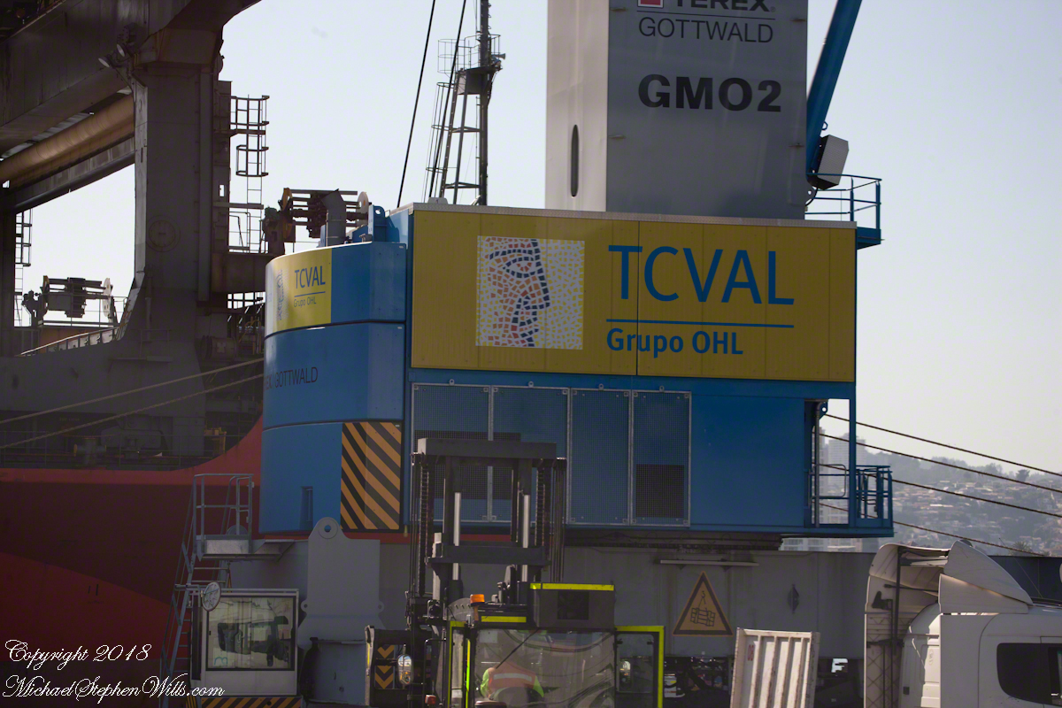 The structure labeled TCVAL is called the Gottwald, a mobile harbor crane from the TEREX based in Dusseldorf, Germany. TCVAL is an acronym, “Terminal Cerros de Valparaíso” (Hills Terminal of Valparaiso), and stands for the port management company.