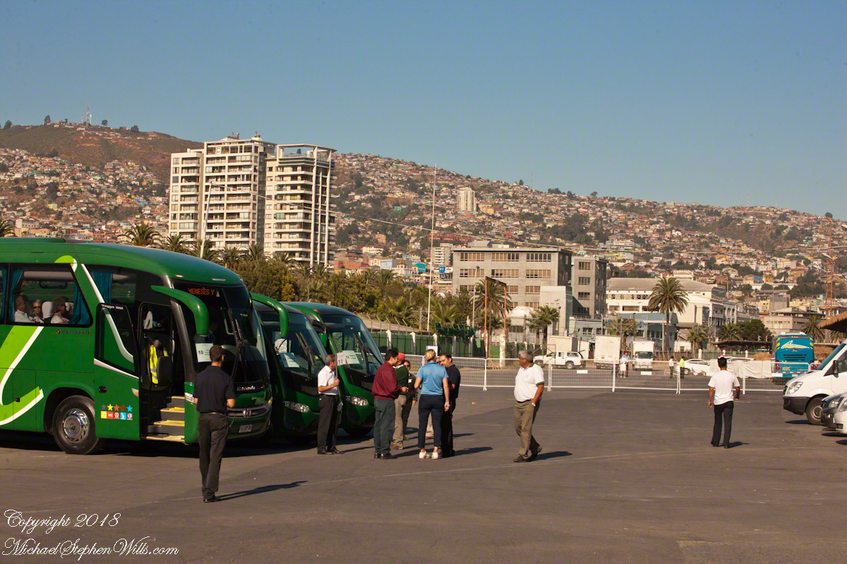 Shortly after breakfast Pam and I were among a gathering of travelers, several friends made in the last ten days among them, waiting in the Regatta lounge for tour assignments. In my previous posting, “Valparaiso Separation, you can see exactly where the Regatta was docked among the orderly chaos of the port as seen from the Ascensor Conception. “Valparaiso Separation” also includes several photographs from my early morning hours on our port side stateroom terrace photographing the approach to Valparaiso and the city itself.
