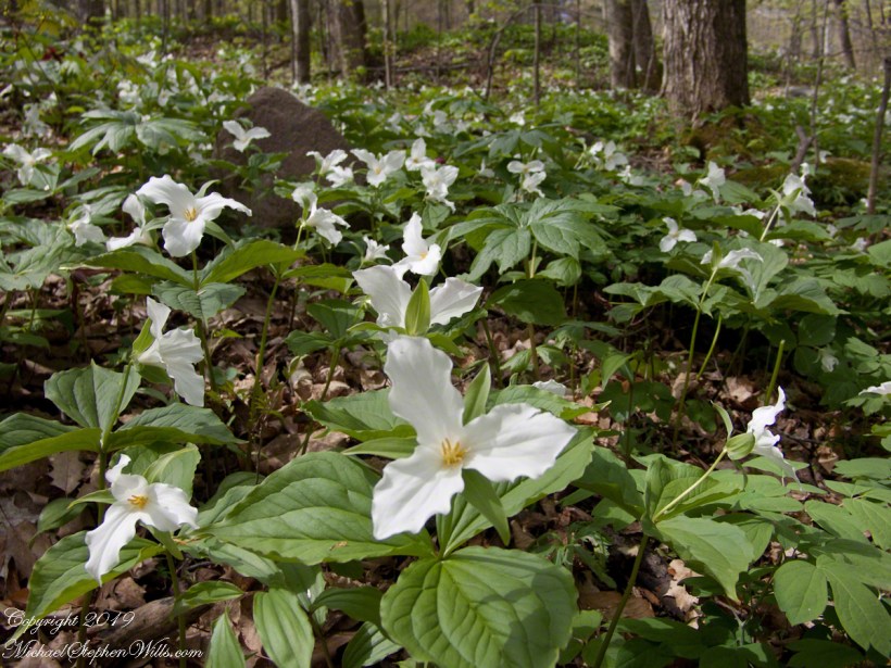 A week later, I wander the lush gorge of Fillmore Glen. The trail is alive with birdsong and the rush of a creek. Dappled sunlight slips through the greening canopy, illuminating patches of the forest floor. Rounding a bend, I catch my breath — the hillside ahead is blanketed with hundreds of white trilliums, a breathtaking constellation of blooms across the ground that feels almost sacred. Careful not to tread on any, I step closer to admire them at eye level.