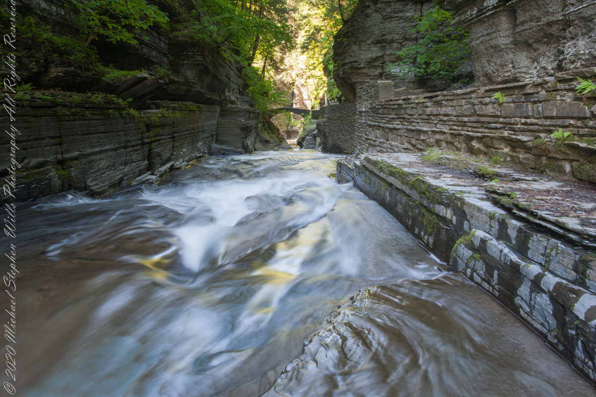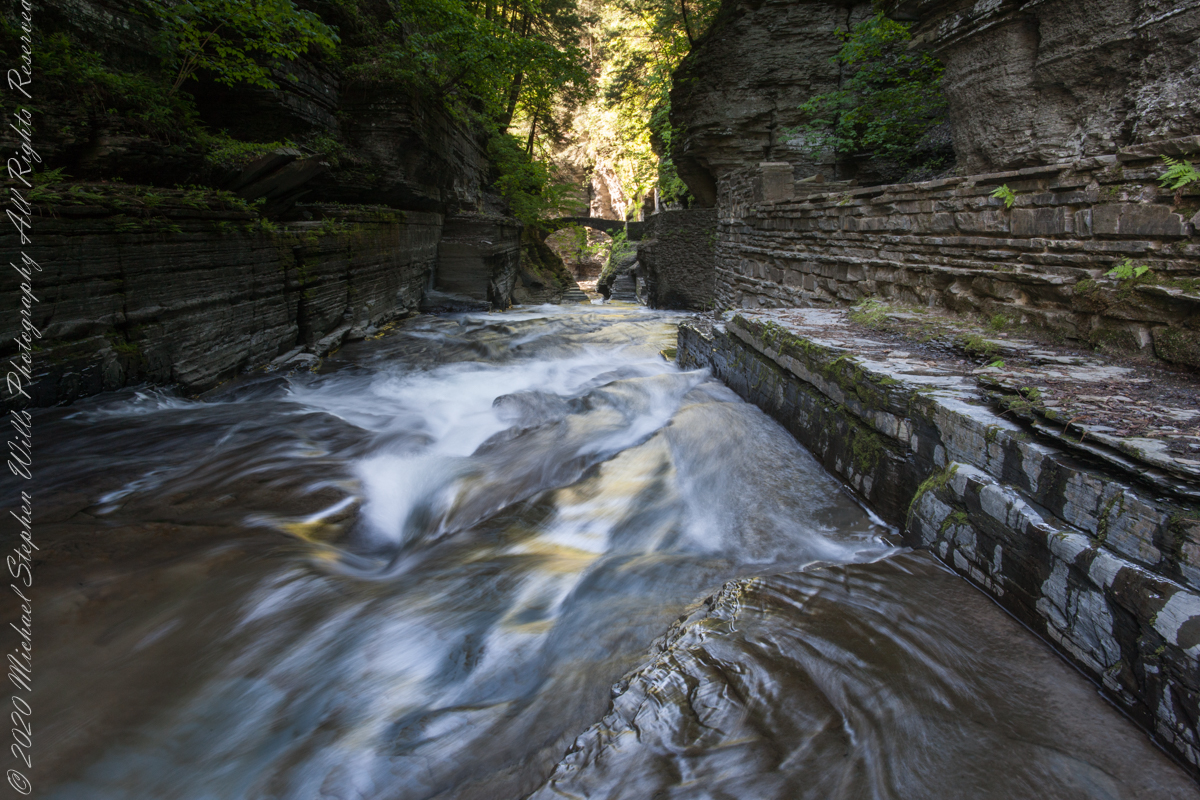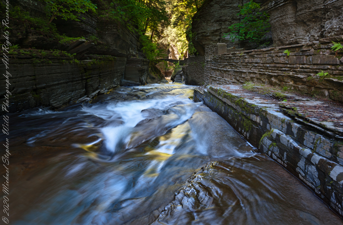 It is 8:30 am on a Memorial Day morning Robert H. Treman Park, Ithaca, Tompkins County, New York. From the Canon ES-1Ds Mark III mounted with a Canon 24 mm f/1.4L II USM lens, on a Manfrotto studio tripod and hydrostatic ball head. I chose to save results to a TIFF file as it is not possible to save settings to the raw format.