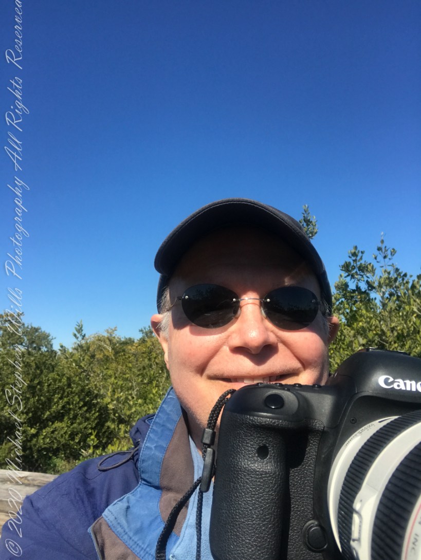 I left Pam at the entrance, seen below at the words “Ulumay Wildlife”; she had a reasonable concern about alligators. It is quite possible to find a large specimen blocking the one and only trail. “What? Me Worry?” When pursued by an alligator, remember to zig-zag.