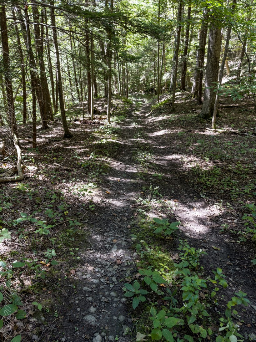 Over a period of 11,000 years this former stream bed, abandoned when a melting tongue of the Laurentide Ice Sheet deposited drift across Enfield Creek, transformed to this sun dappled glade, one of two along the Gorge Trail of Treman Park.