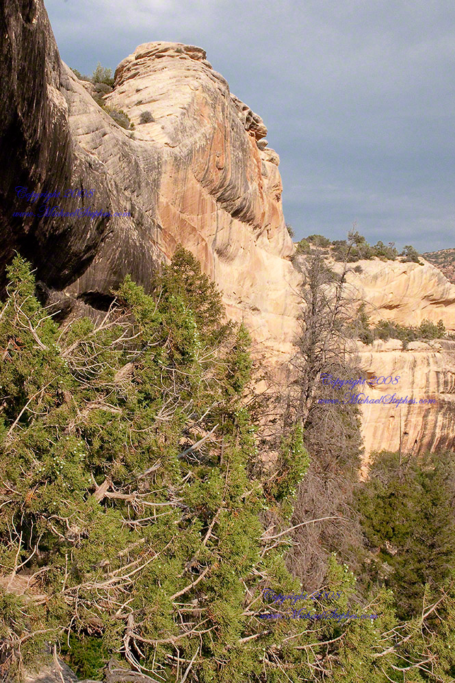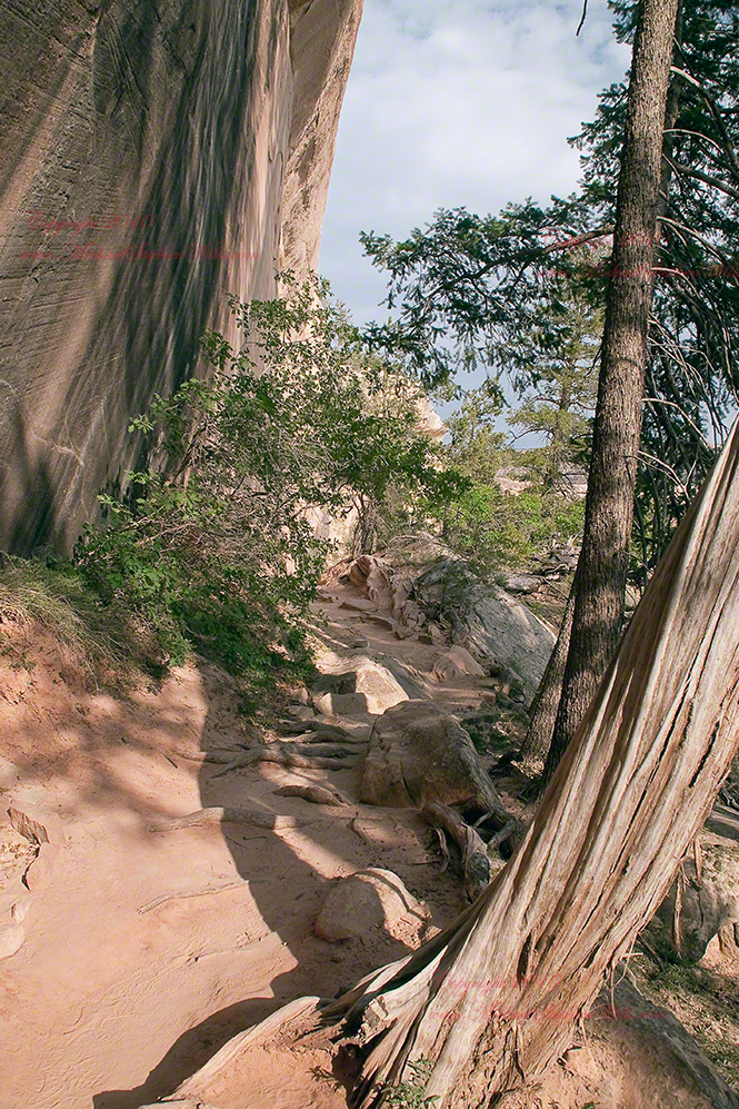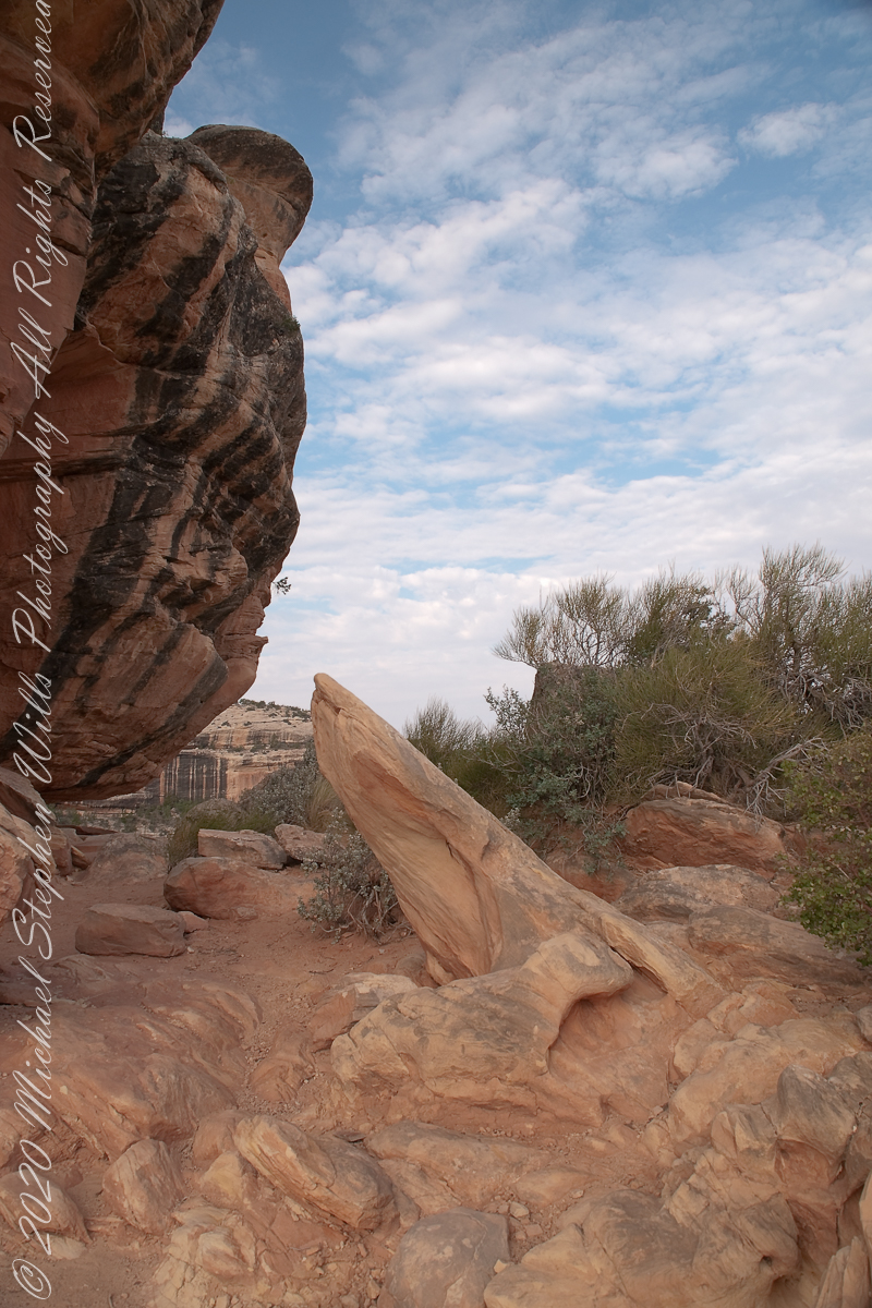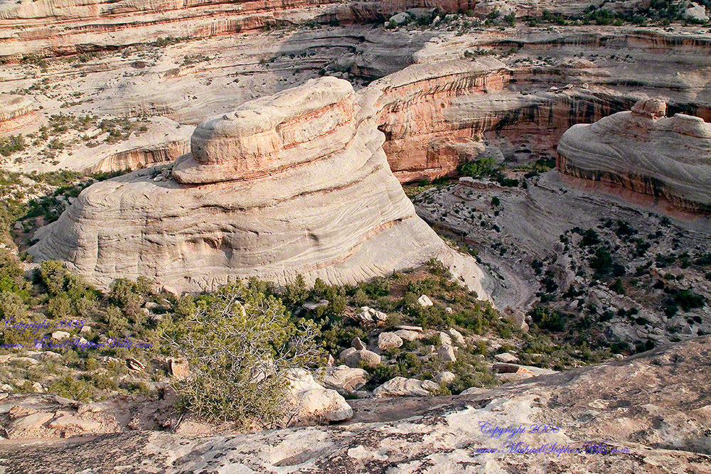 This was another feature of Pam and my descent into White Canyon. The sandstone weathers in a way that produces steep slopes over which the trail must pass and the traveler navigate. I chose this image as a Fine Art print (part of a series featuring Natural Bridges National Monument) because this part of the trial is strange and beautiful.