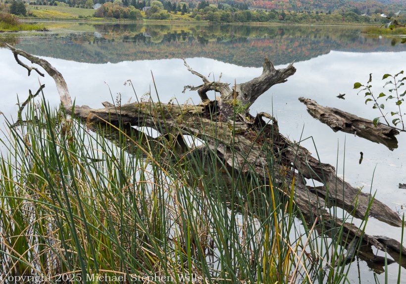 Here we are traversing a swamp, our steps buoyed along on planking made from recycled plastic. The boardwalk floats visually above pools the color of tea, edged with moss and skunk cabbage. It’s easy to imagine what this crossing would have been like before the planks were laid—boots sinking, knees splashed, delicate plants crushed. The modern walkway is a quiet compromise: we may enter this saturated world without trampling it, a human gesture that matches the preserve’s ethos of protection and restraint.
