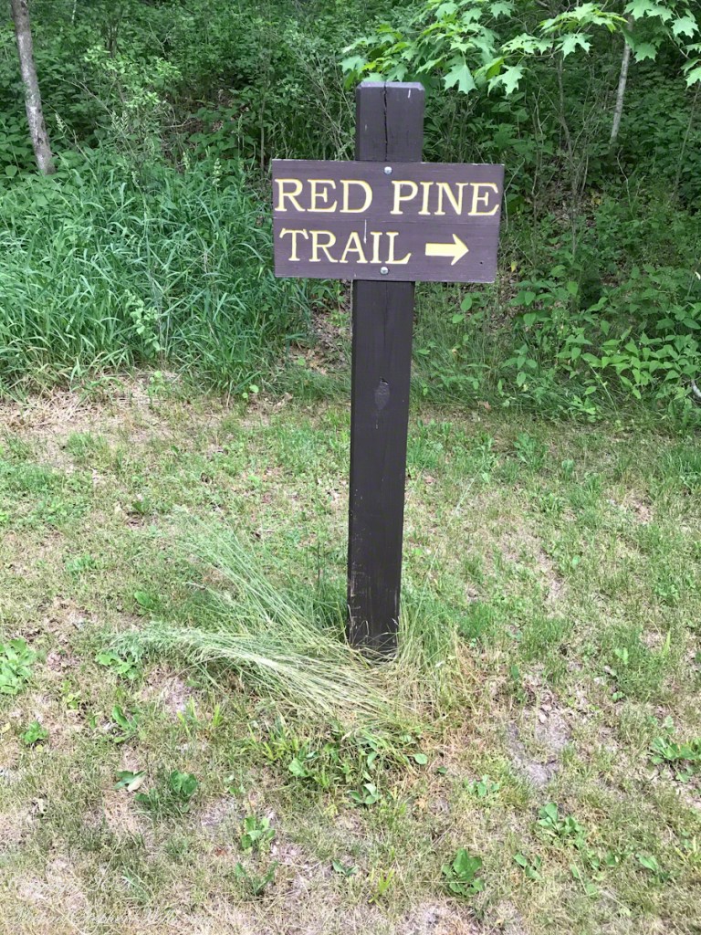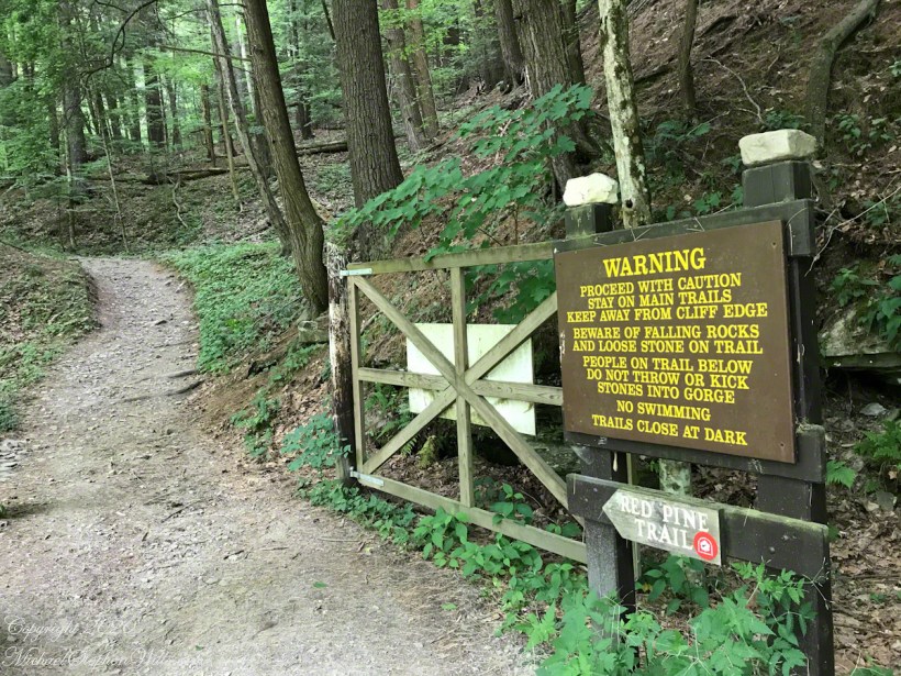 One hundred and fifty feet in a series of steep climbs is the effort expended to reach the relatively level portion of South Rim Trail where the tall Red Pines briefly reign. Here the trees thrive on the northeast facing slope. They grow in this way in one other location, in the upper park, on an eponymous trail.
