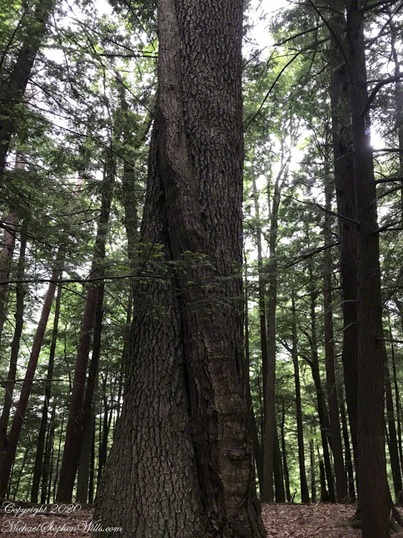 One hundred and fifty feet in a series of steep climbs is the effort expended to reach the relatively level portion of South Rim Trail where the tall Red Pines briefly reign. Here the trees thrive on the northeast facing slope. They grow in this way in one other location, in the upper park, on an eponymous trail.