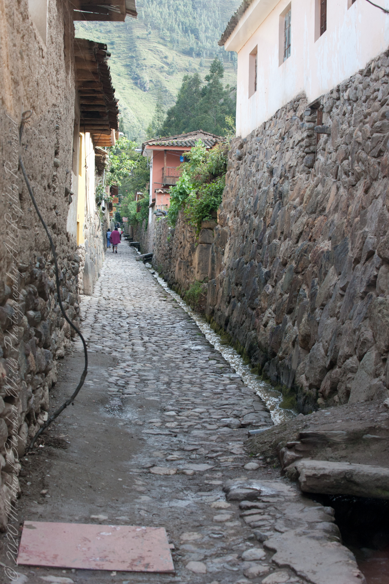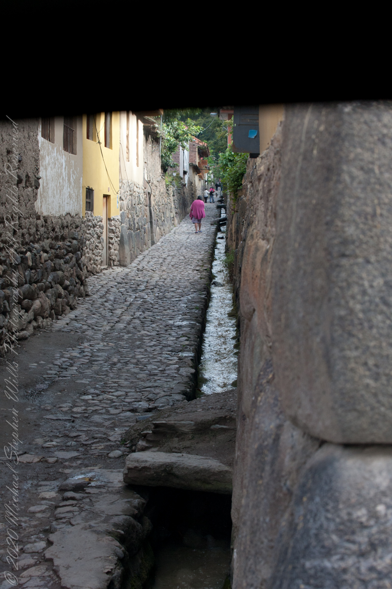 After passing Toronto Ruins, the train rounded a curve into the Amazonian rainforest. It was, frankly, boring, oppressive to proceed with greenery on either side blocking even the Sacred Valley walls rising on either side of the tracks. Thank goodness for the large roof viewing windows. I captured this photograph of the Intipata ruins on Machu Picchu peak by looking backwards through the roof window.