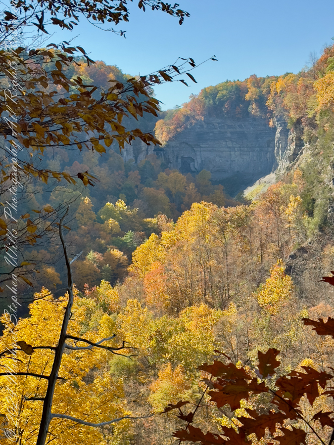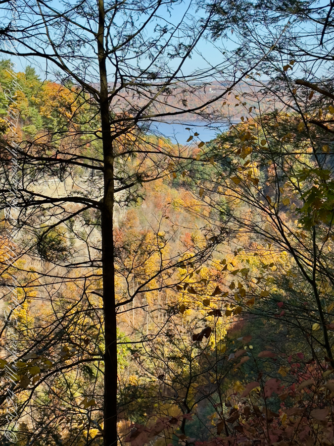 The last push to the saddle is steep, the steps uneven, the sky now a cascade of colors—copper, rose, faint lavender melting into a high dome of blue. The silhouettes of distant ranges sharpen: the Estrellas?, the Superstitions?, low ridges whose names I do not know. On the horizon, the first thin line of sun breaks free, setting fire to the edges of clouds. In another photograph, framed by dark rock and desert trees, that sunrise becomes a golden portal at the end of a shadowed corridor of stone.