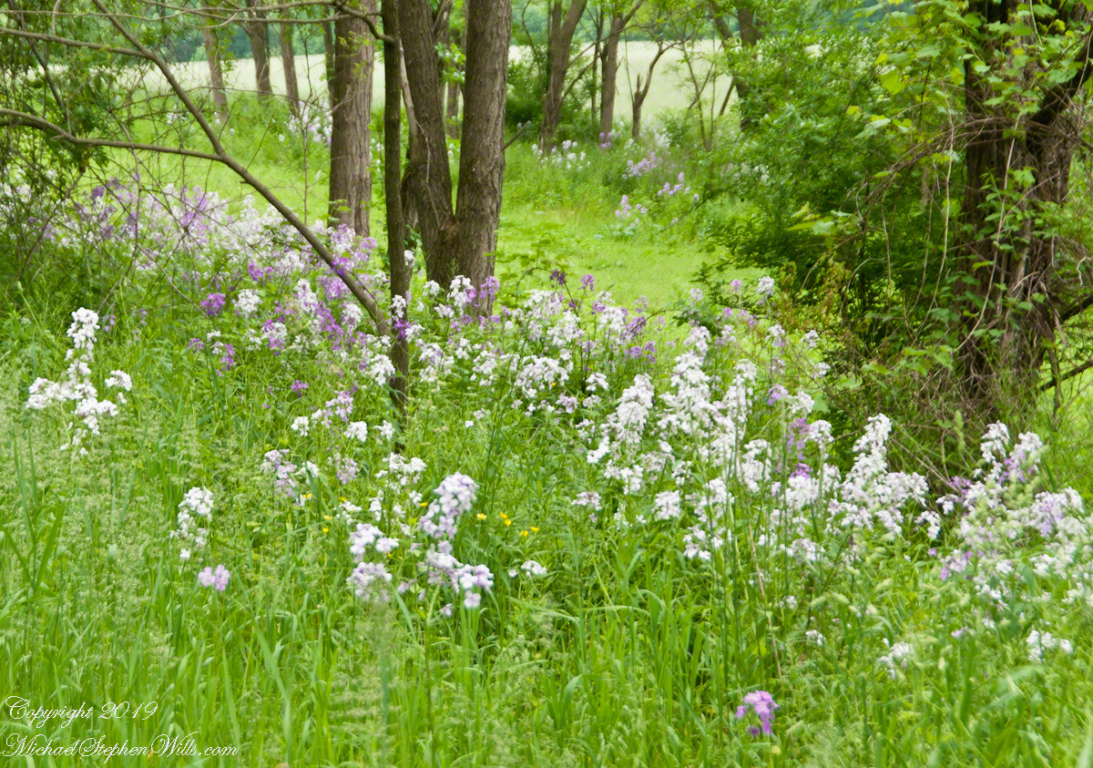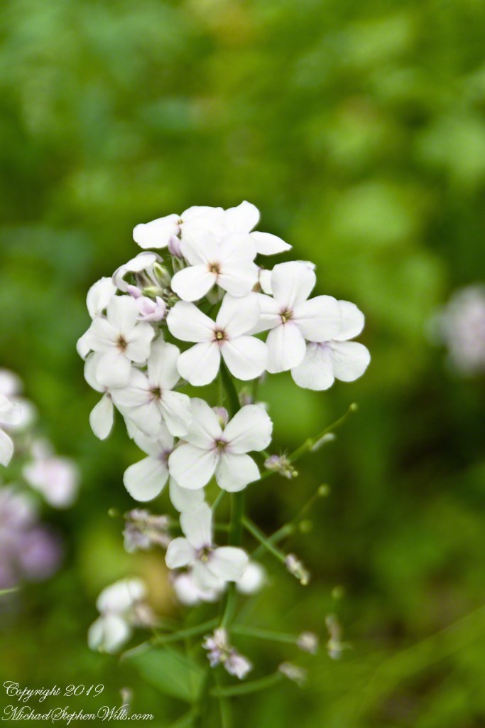 A member of the Phlox family (Polemonium), this five (5) petal flower bloomed in small groups on erect stalks with sparse leaves. The stamen heads are notable for a bright blue color.