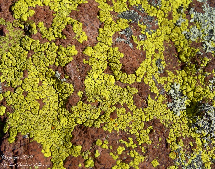 Heading back down to the creek, here is a macro of lichen that covered the crumbling surfaces of boulders that littered the slope.