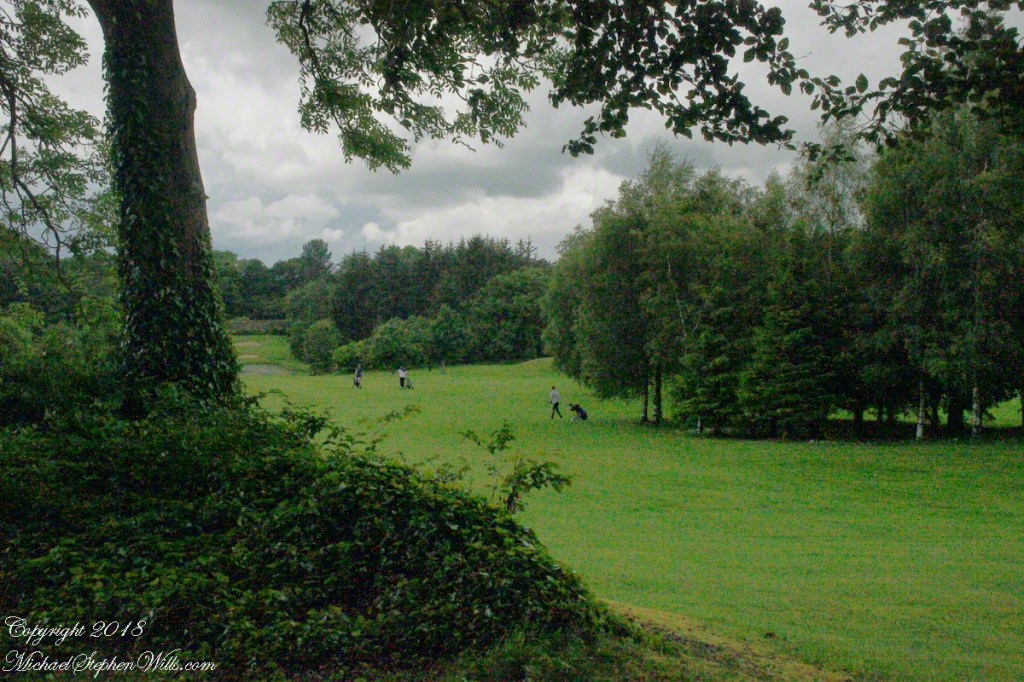 We are surrounded on three sides by the golf course. The “entrance” to the tomb, through the two upright portal stones, faces northwest toward Slieve Gullion, a mountain with its own Neolithic burial site next to a lake on the summit. The mountain and the flat land, such as Proleek township, feature in the story of how the Irish hero Cú Chulainn came by his name. To learn more, click this link for “On the Tain Way” the first of my posting that includes some stories of the hero.