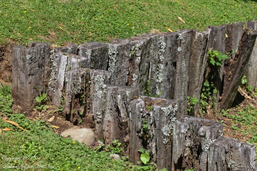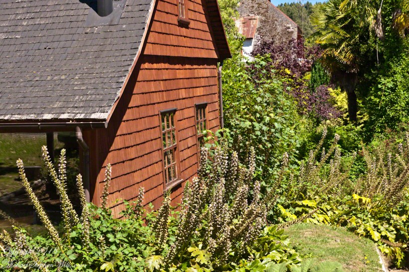 The “watermill” is a nostalgic, sentimental reference echoed in architectural and decorative details throughout the property, such as this series of posted set to suggest a device used to control water flow. There is no water flowing through the property.