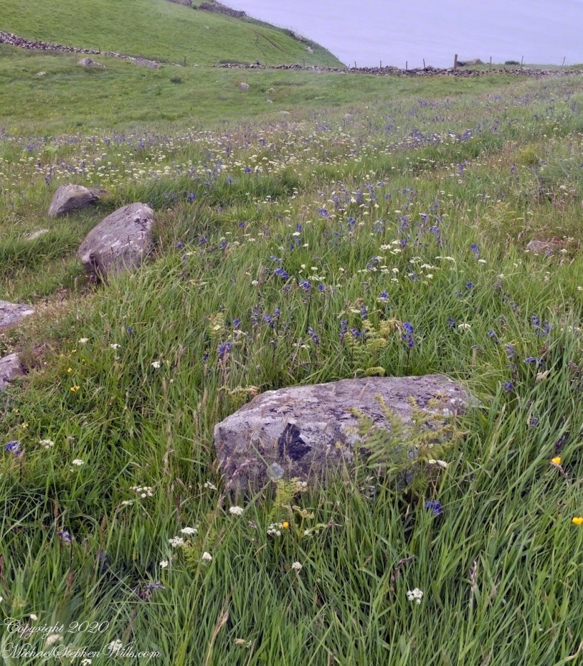 Here are a few I identified, listed by common name: Bluebell, Daisy, Meadow Buttercup, Sea Campion, Yarrow.  We love daisies and buttercups around home.  We spotted Sea Campion on the Dingle Peninsula, as well.  Yarrow is common through Ireland.  I don’t recall seeing bluebells anywhere else.