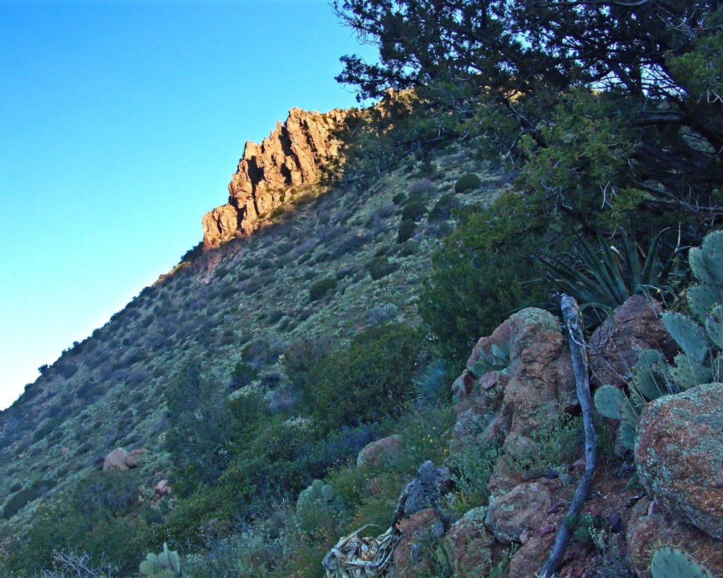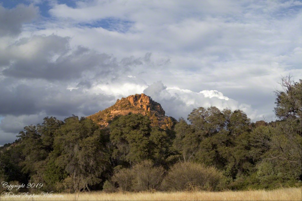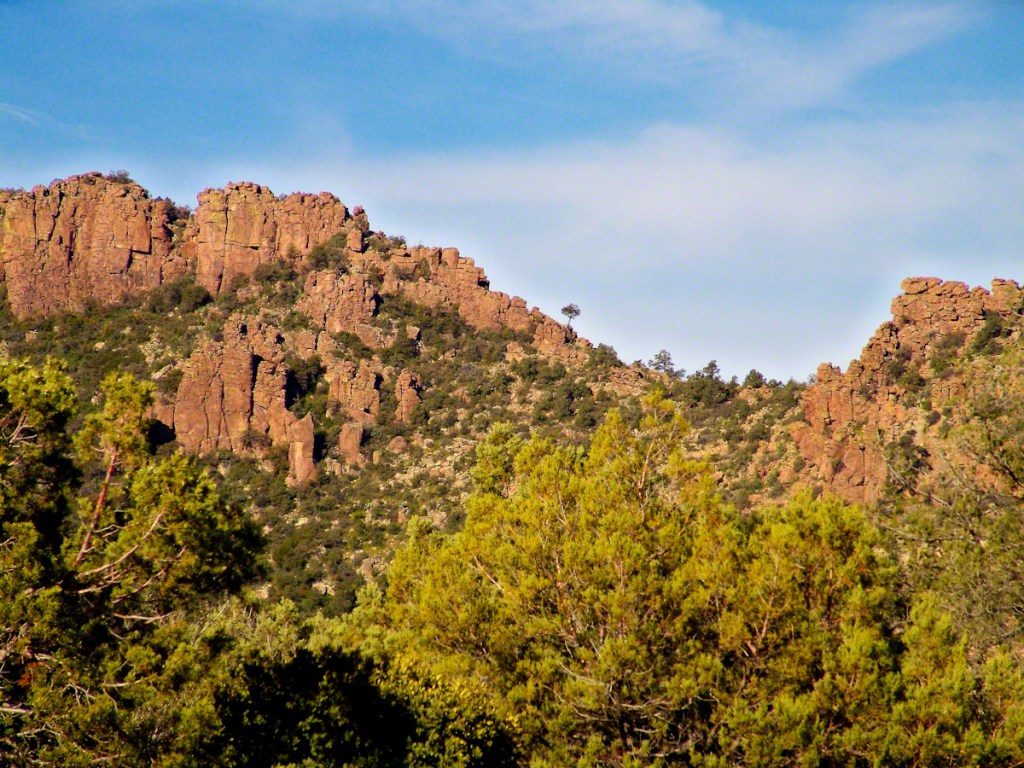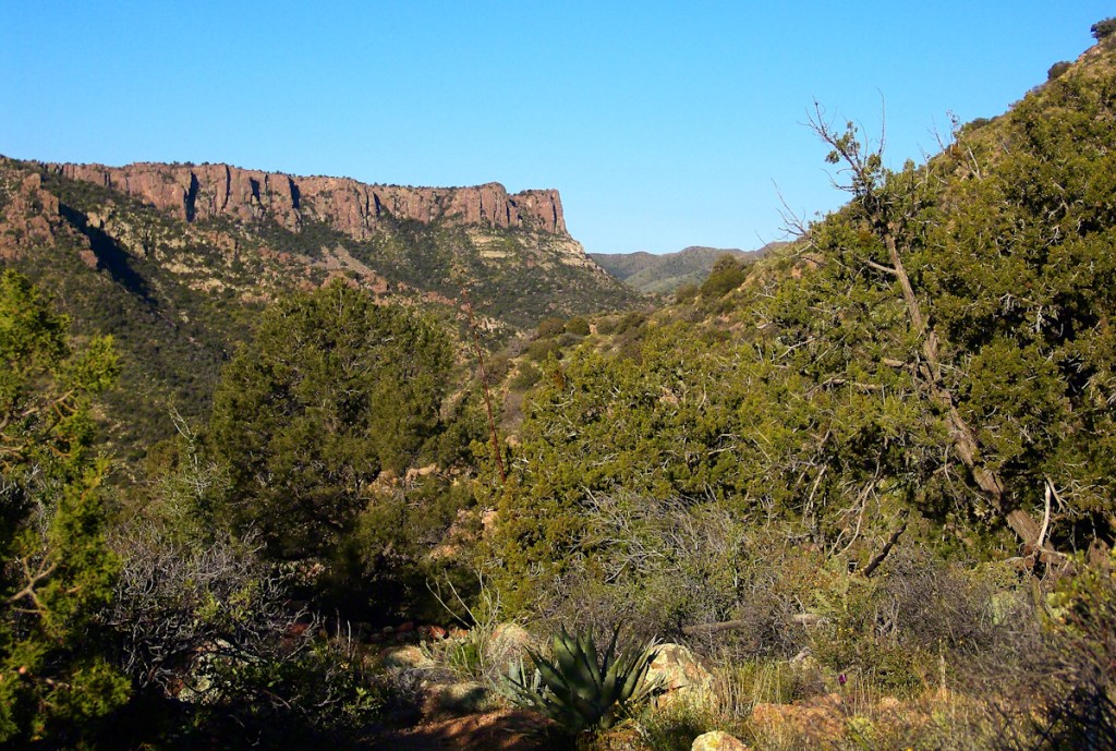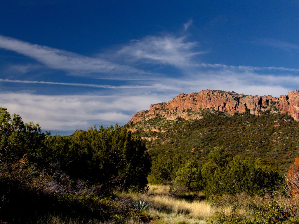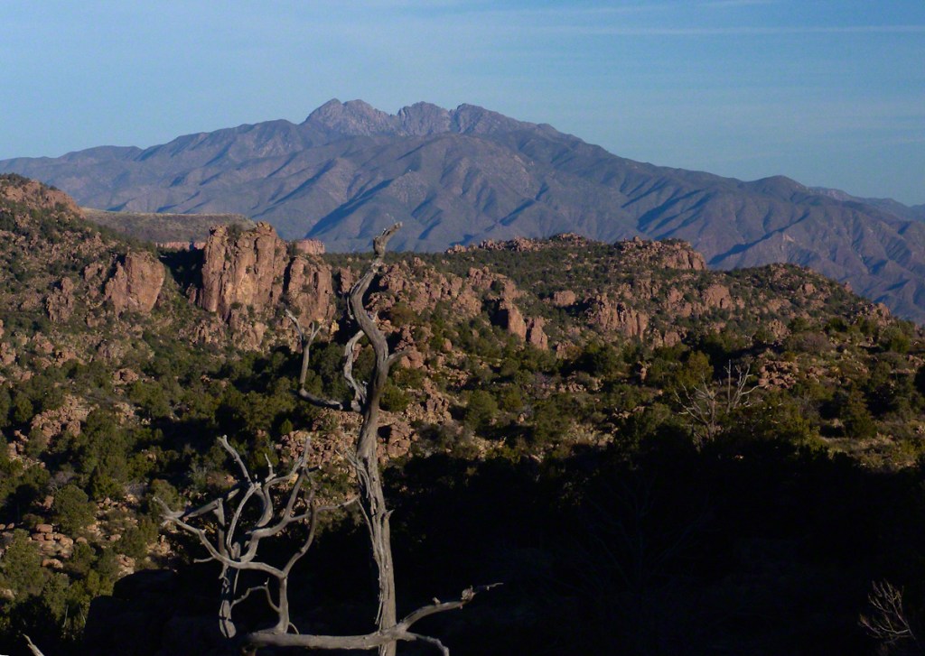 On the east side of Pine Creek a trail, unmarked on the maps, follows the creek bed uphill north towards Mound Mountain. In 50 feet or so we passed the side trail to my campsite, our destination was The Searcher’s campsite. I was not paying near enough attention to the surroundings when I looked up to see an Arizona Oak limb headed to my chest. With no time or space to negotiate the obstacle I was left to grab hold and hang on to be swept from the saddle. The branch held my bulk for, at most, a second before giving way.