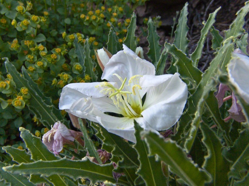 He pointed out on the many flowering Century Plant stalks along the trail. “These are great to roast when young, just as the stalk starts to bud from the center, before it starts to lengthen.” By the time the stalk flowers, as in the following photograph, it is quite tough.