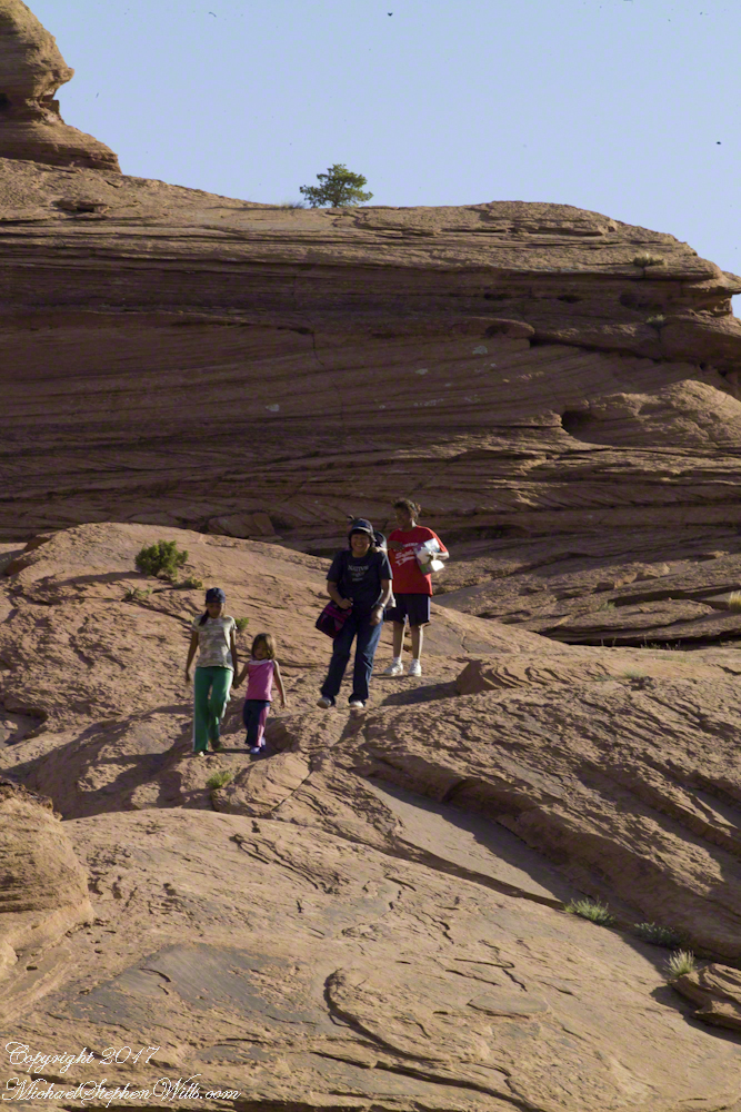That July day the sun set 8:33 pm as the Navajo Reservation observes daylight savings time. My goal was to photograph the White House Ruin I missed in 2003. We arrived at the trail head. My photography kit was expanded from 2003, now included a Kodak DSC Pro slr/C, the “C” meaning “Canon” lens mounting, a Sony 700 alpha slr (I only use a variable lens), Manfrotto tripod with hydrostatic ball head, and the backpack style Lowe camera case. With the tripod it is over 25 pounds.