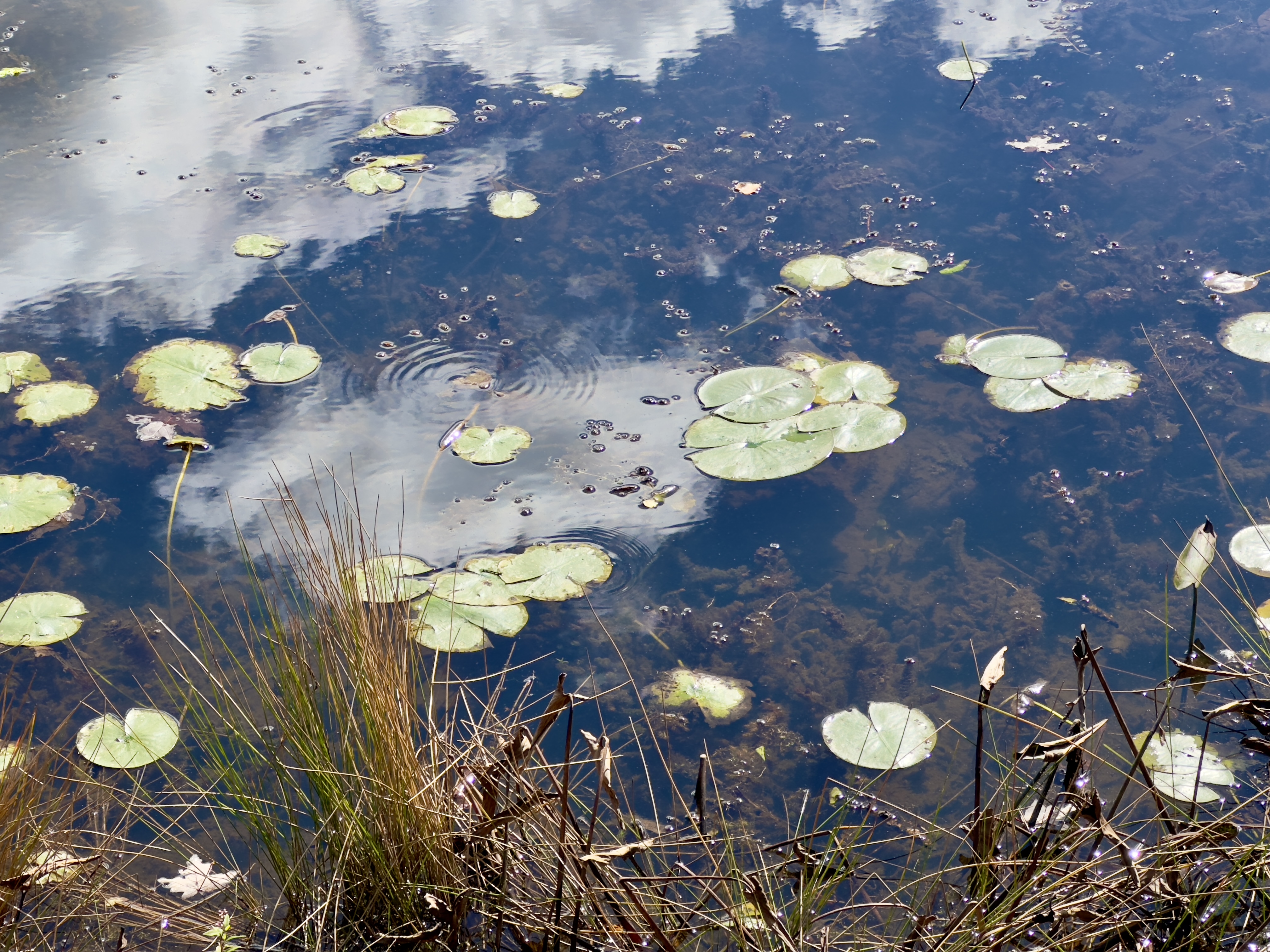 The path narrows again, following the edge of the creek where the water has worn smooth channels into the stone.