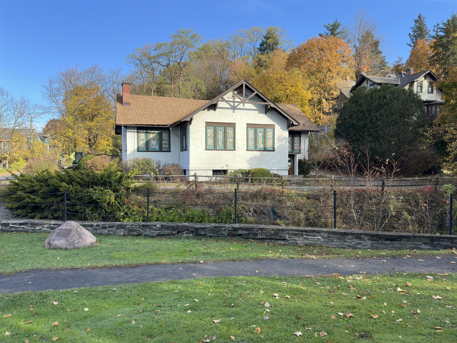 Just a short way in, I notice the First Church of Christ, Scientist perched on the corner of University Avenue and Cascadilla Park Road. The architecture of the church is both quaint and elegant, with its light-colored facade framed by dark trim and roof. Surrounded by foliage, it feels like the church belongs here, as much a part of the landscape as the trees and rocks. The sight of this historic building nestled so close to the gorge reminds me that this wild and ancient place is woven into the fabric of Ithaca’s community life.