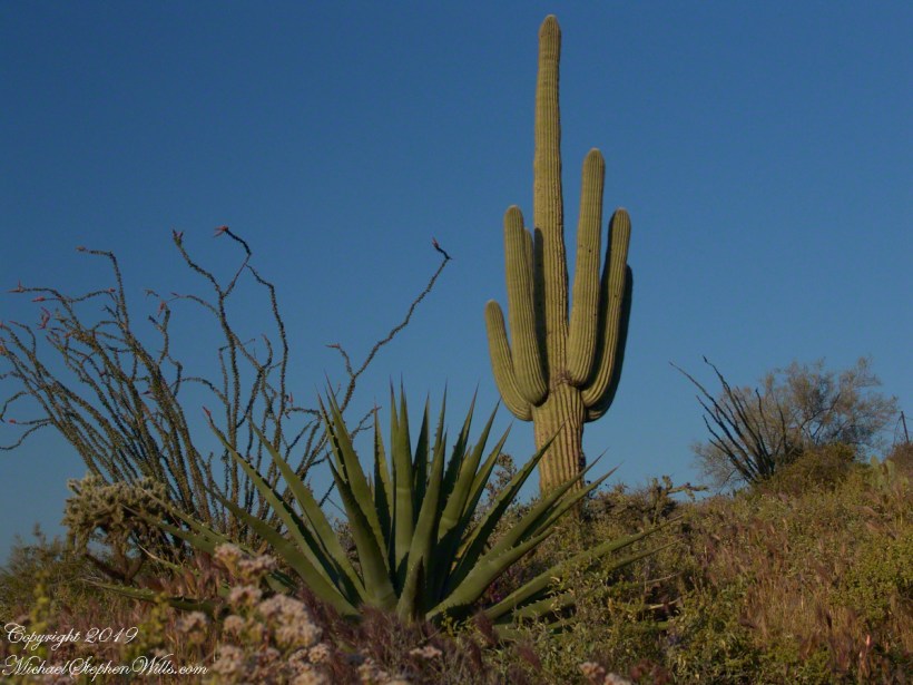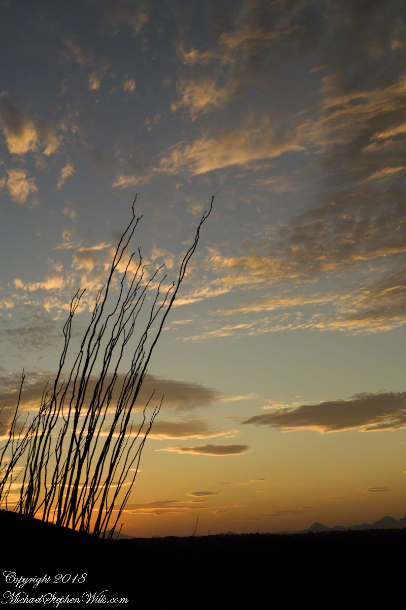 The desert plants materialize around us as shapes before they acquire color. Saguaros stand like sentinels along the slopes; their arms lifted in silhouette. Ocotillo rise as witchy bundles of sticks, each spine leafed out from October rains the leaves catching a little light. On a small plateau a family has paused; the father adjusts a tiny headlamp on his son, no more than six, who is insisting, with fierce determination, that he can carry his own water. “Almost there, campeón,” his father says, and the child straightens like a soldier.