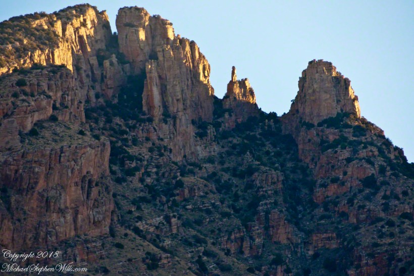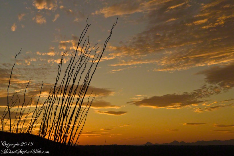 The desert plants materialize around us as shapes before they acquire color. Saguaros stand like sentinels along the slopes; their arms lifted in silhouette. Ocotillo rise as witchy bundles of sticks, each spine leafed out from October rains the leaves catching a little light. On a small plateau a family has paused; the father adjusts a tiny headlamp on his son, no more than six, who is insisting, with fierce determination, that he can carry his own water. “Almost there, campeón,” his father says, and the child straightens like a soldier.