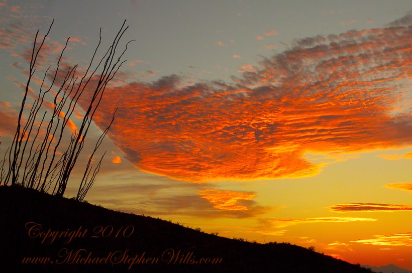 For a few minutes conversation dies away. Everyone seems to feel the same thing: that fragile instant when the sun clears the horizon and the desert shifts from silver-blue to gold. The rocks around us, sharp and broken in the photographs, glow honey-colored. Saguaros catch light on their spines, each thorn a tiny ember. Even the dusty air seems to shimmer.