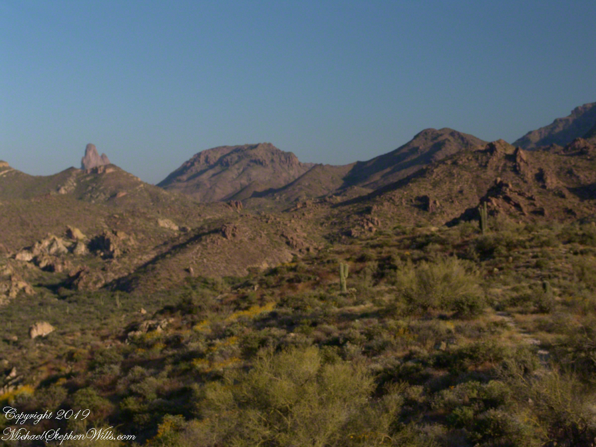 The dark begins to soften at the edges. Over the eastern horizon a thin band of orange appears, a delicate seam between night and day. In one direction, the city stretches out in a glittering net of streetlights, the squares of parking lots and subdivisions catching the last of the darkness. In the other, the mountains are still black cutouts, their profiles sharp as paper against a gradually brightening sky. One of my images will hold that moment: the jagged ridge of Piestewa in shadow, the valley below already spangled with light, a single towering saguaro rooted at the cliff’s edge like a punctuation mark.