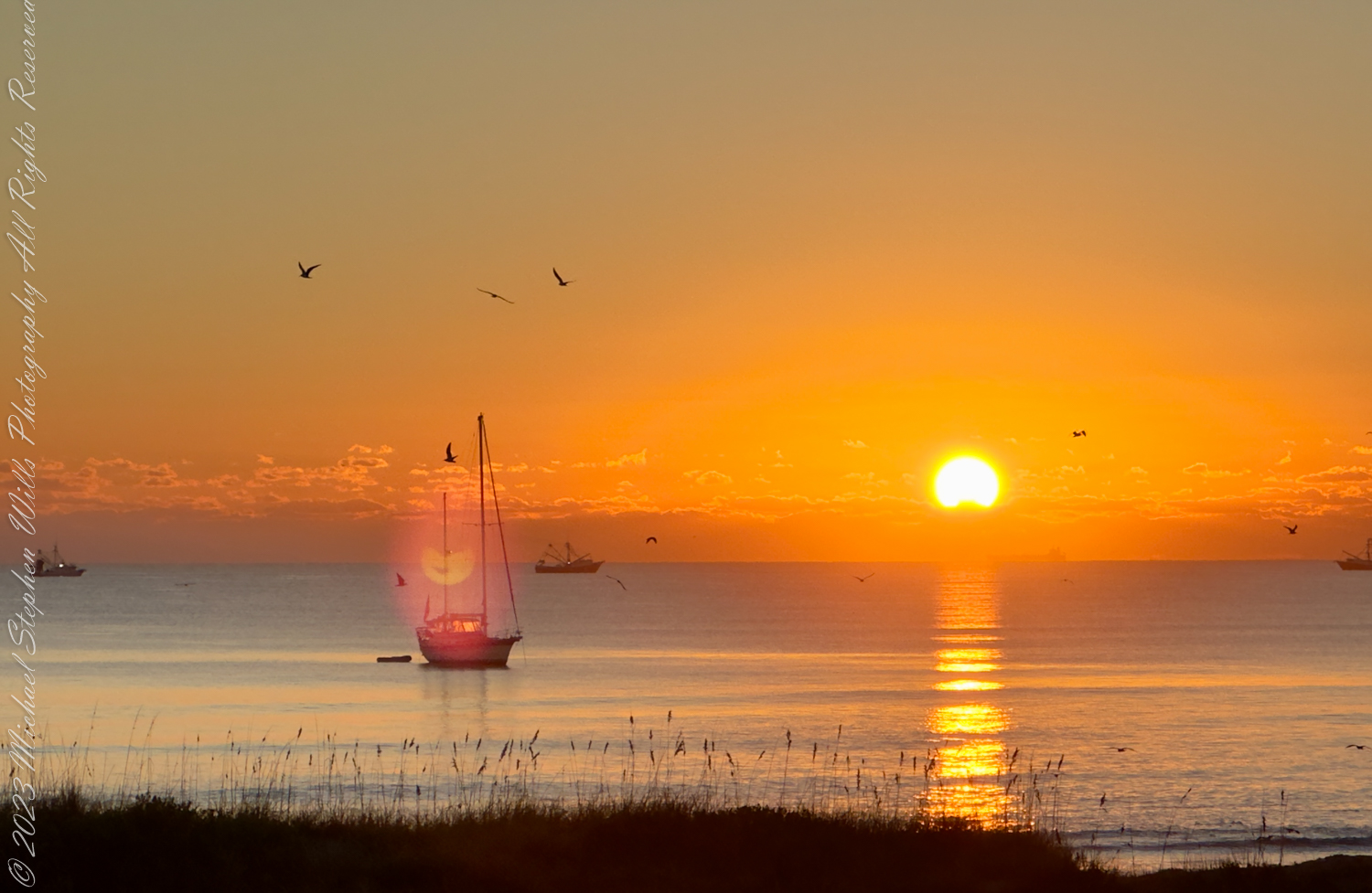 As the day waned, my gaze shifted from the shells to where the water met the sky. There, a sailboat floated serenely, a silent sentinel between two worlds. It was a picture of solitude, a single vessel on the brink of the infinite sea, beneath the expanding dome of the heavens. On the horizon, the silhouette of a cargo ship whispered stories of distant lands and the ceaseless pulse of commerce and exploration that defined our modern era.