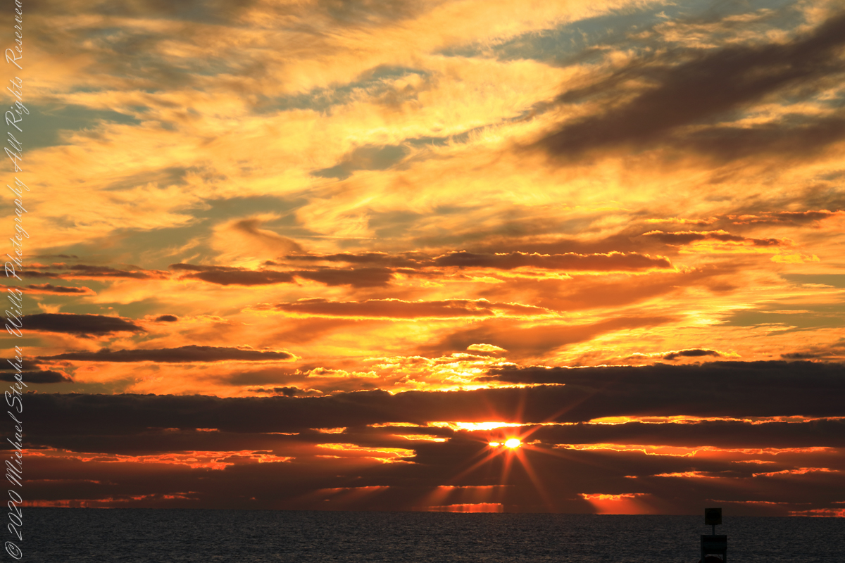 As the sun dipped lower, casting its farewell in hues of amber and soft gold, Pam and I stood beside the serene Cayuga Lake Inlet, gazing westward. The stillness of the evening was a quiet symphony, punctuated only by the gentle lapping of water against the shore. It was November 5th, and the world seemed to hold its breath in the golden hour, that perfect moment minutes before the sun would bid its final adieu for the day.