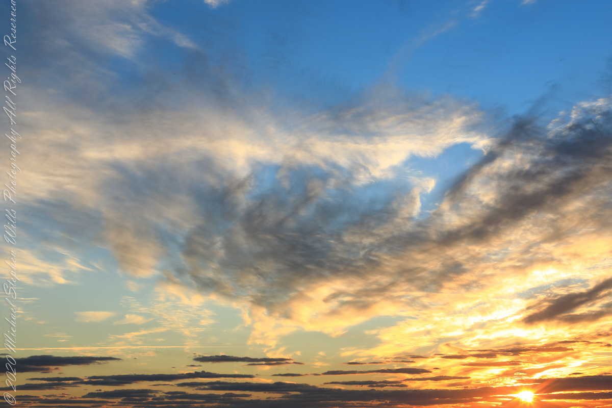 As the twilight deepened, the Cirrus fibratus began to glow with the sun’s final touch, turning from white to shades of pink and fiery orange. This spectacle was a gentle reminder of the passage of time, the cycles of nature, and the endless dance between the earth and the sun. The clouds foretold of cooler weather, perhaps a sign that we should cherish these last vestiges of autumnal warmth.