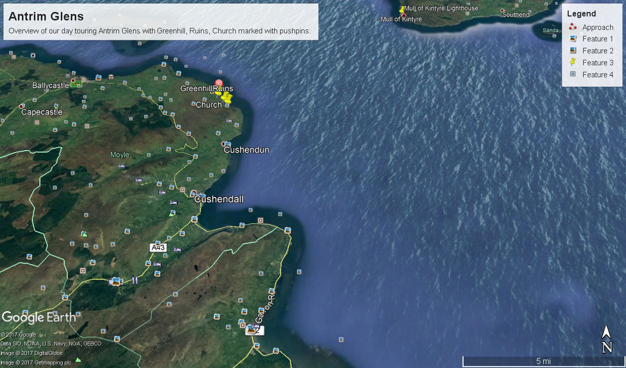 To understand the full beauty of a place, it is necessary to live it, to experience the seasons, approach the land from different aspects; pass the same place many time, noticing overlooked features, enjoying old favorites. We did our best in this single day and took the exploration of this Antrim County coast slow, savoring all the views we noticed as this is a once in a lifetime experience. Imagine our amazement to find Scotland so close at hand. In the past, on a fine day the trip across the North Channel, up eastern Kintyre peninsula shores to Campbeltown at the head of Campbeltown Loch, was easier than a land crossing to a closer town.