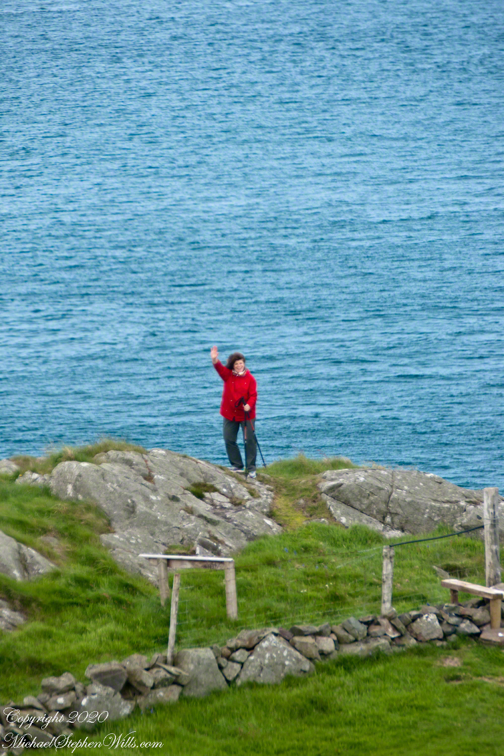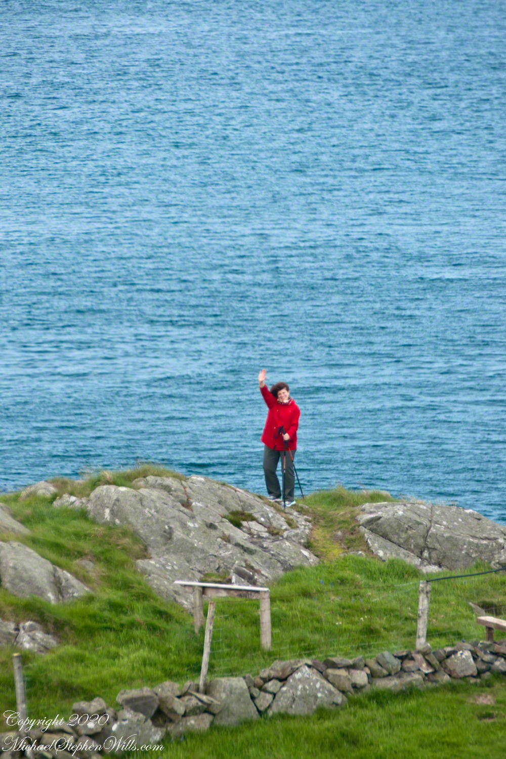 Pam was standing on the edge of the head, short for headland (“point” is another name for it). The Paps of Jura are part of the Isle of Jura, 40.7 miles distant.