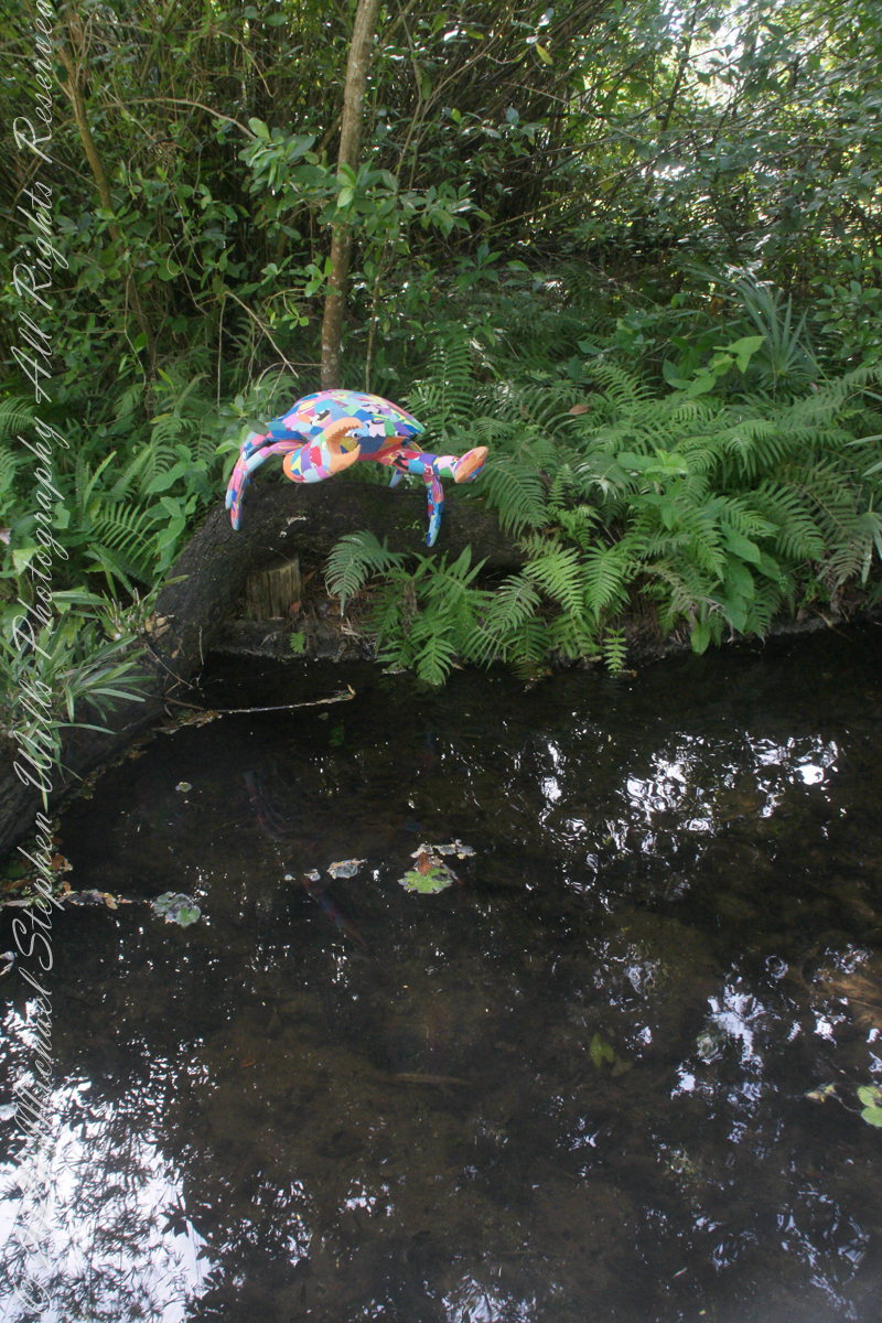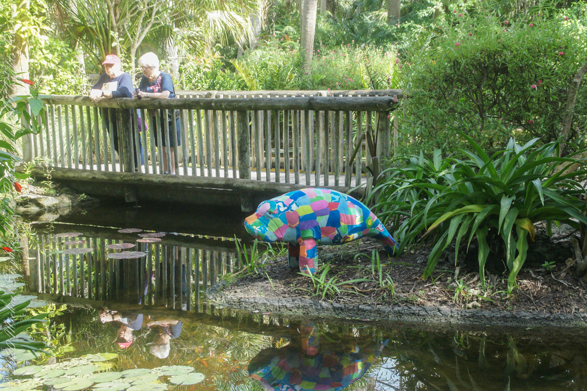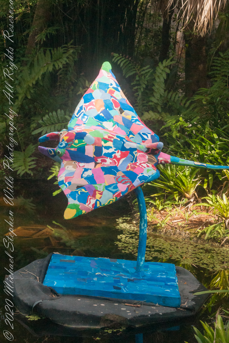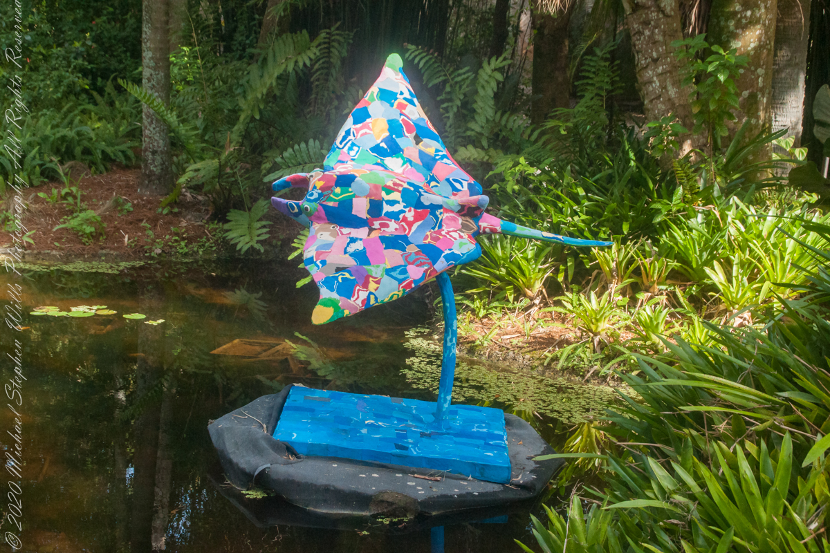 The air was crisp yet warmed by the steady rays of the January sun as I wandered through McKee Botanical Garden. The interplay of light and shadow danced across the palm fronds, creating an enchanting ambiance that whispered serenity. My pace slowed as I approached a reflective pond tucked away within this verdant sanctuary. There, shimmering like a fragment of the heavens brought to Earth, stood a glass sculpture titled Tower.