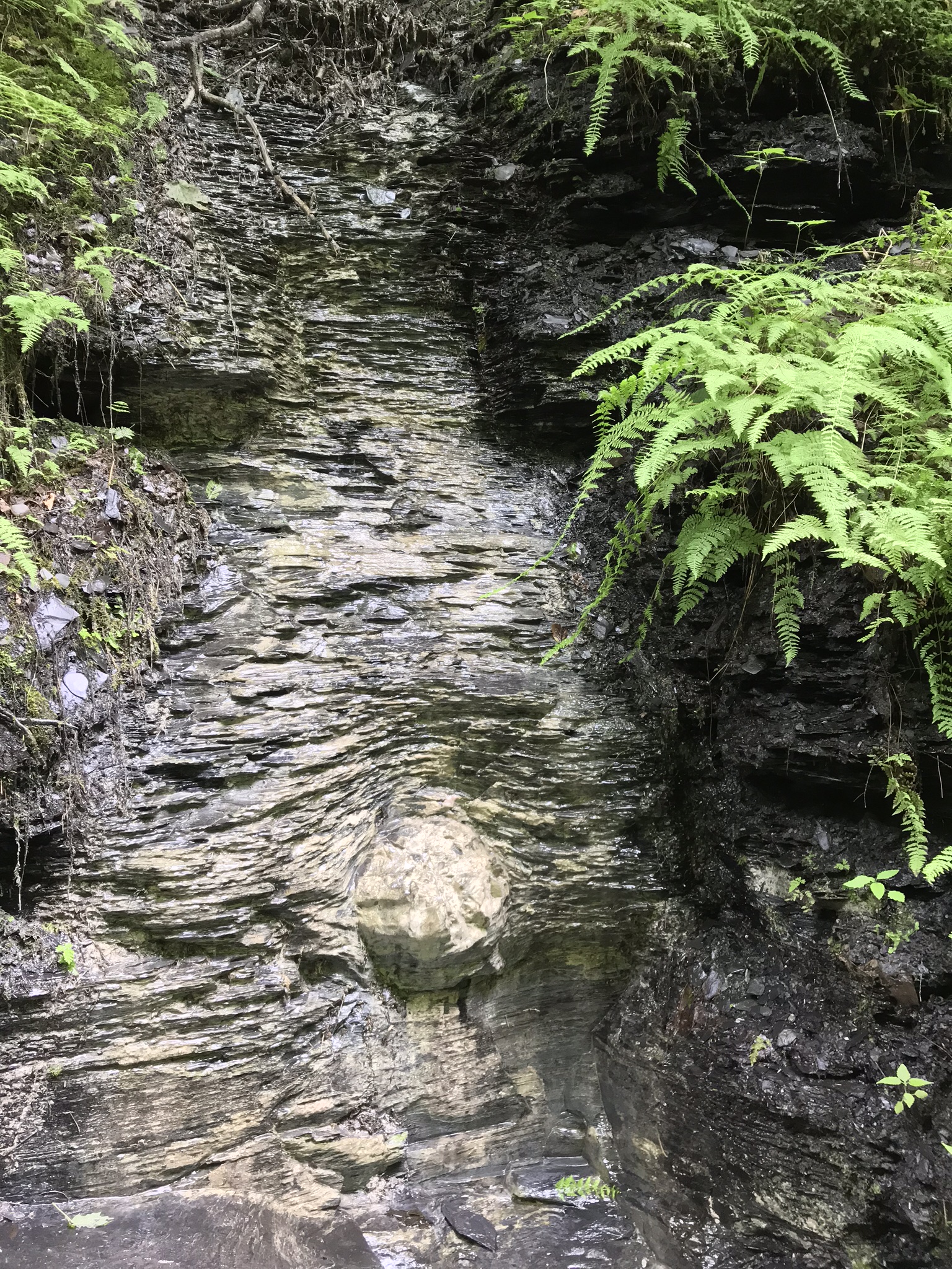 The rocks of Taughannock Falls tell a story that stretches back 380 million years to the Devonian Period, a time when the region was submerged beneath a shallow inland sea. Layer upon layer of shale, sandstone, and limestone formed as sediment settled to the ocean floor, preserving the fossils of marine life that once thrived here. These rocks have endured the passage of eons, but the gorge itself is a far more recent creation.