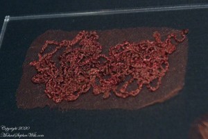 This silk, still darkly colored today, is testament to the stability of cochineal dye, the reason it is still coveted today yielding four times the price of synthetic dye. Today, you are most likely to encounter cochineal on your lips: lipstick and (natural) food colorant.