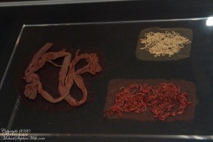 Precious metals were not the only loot shipped to Spain from the American colonies. Among the finds from La Girona, scarlet and yellow silk ribbons decorated the officers’ clothing. The red dye was obtained from the cochineal insect which lived on the nopal cactus in Mexico. Cochineal was imported in very large quantities by the Spanish and was in demand all over the world for its rich, carmine color.