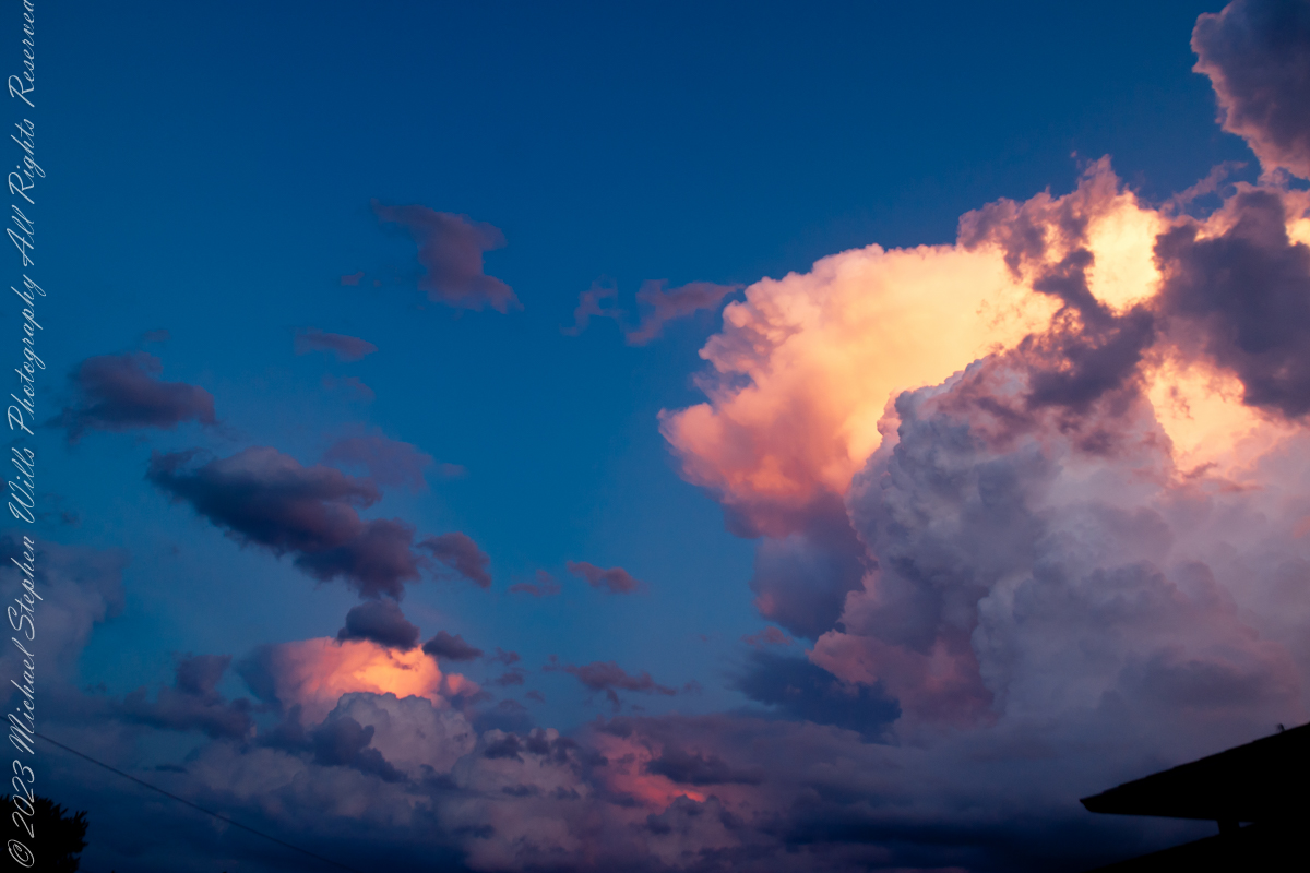 These clouds can produce lightning and other dangerous severe weather, such as tornadoes, hazardous winds, and large hailstones. Cumulonimbus progresses from overdeveloped cumulus congestus clouds and may further develop as part of a supercell. Cumulonimbus is abbreviated Cb.