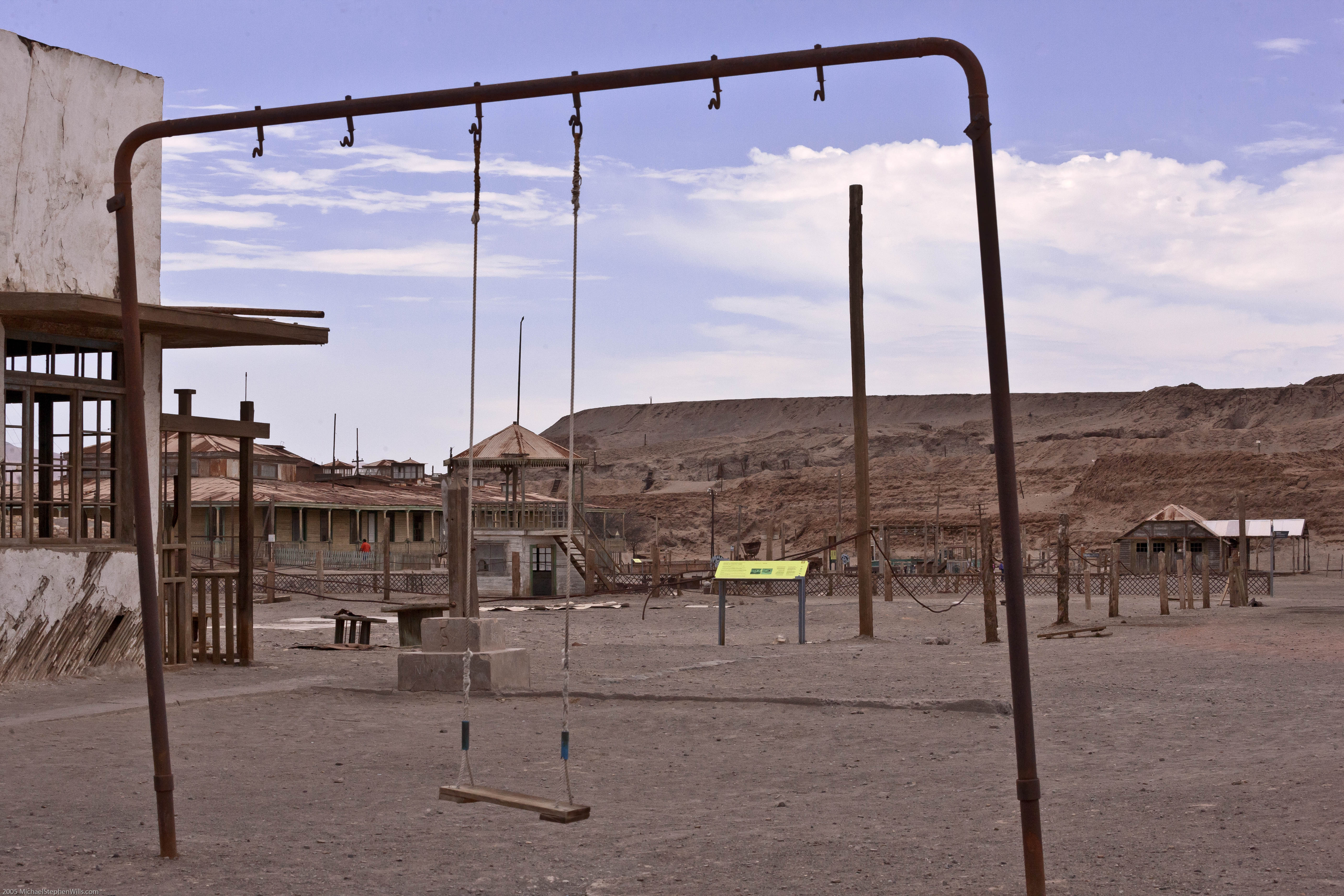 Can you spot the children and visitors in these scenes from the World Heritage Site Humberstone located in the Chilean Atacama desert?