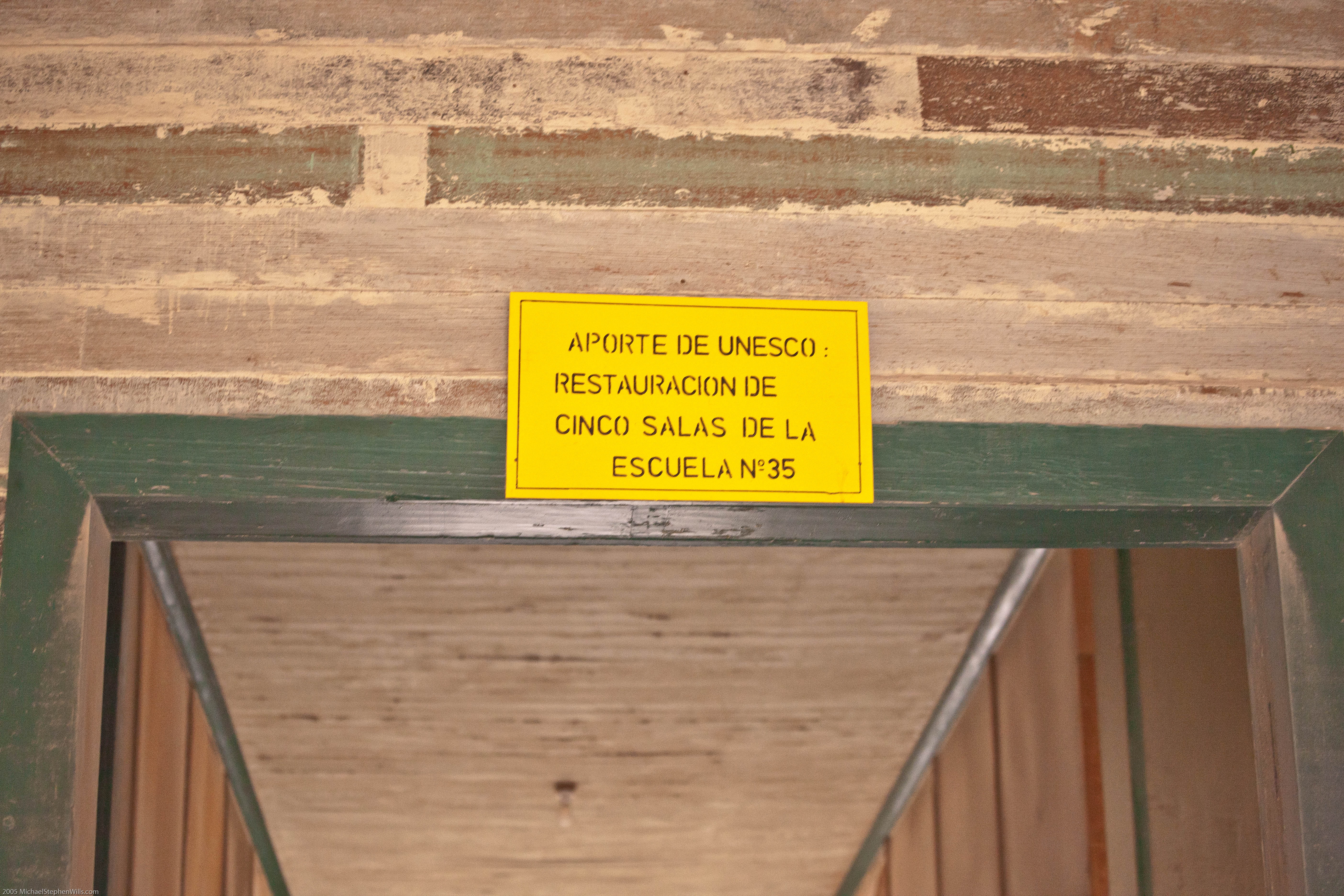 Children are our hope and the future. The yellow sign reads “UNESCO Contribution. the restoration of five classrooms of School number 35.”