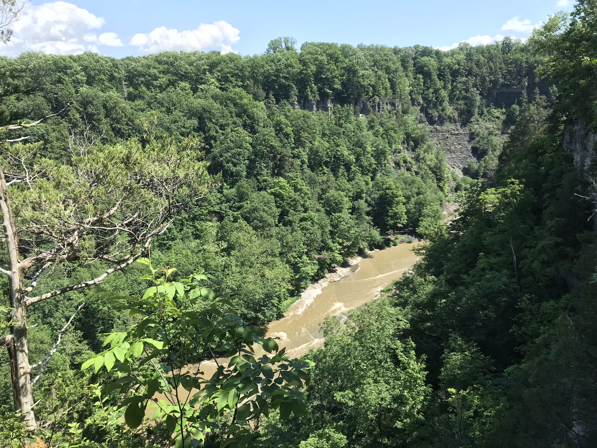Walking around Taughannock Falls New York State Park on the solstice of 2019 starting from the Black Diamond trail head on Jackson Road, down the South Rim trail, up the North Rim Trail. We had a great deal of rain this week and the water filled the falls the full channel width.