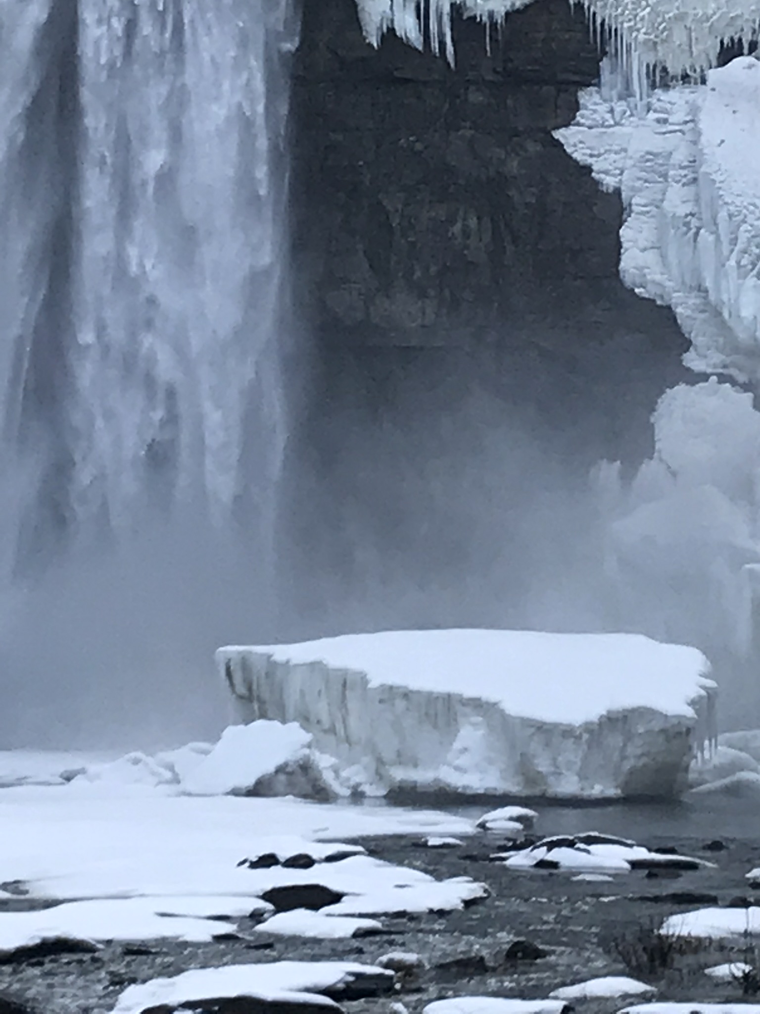 Pam was fascinated by the appearance of snow and ice accumulated on the talus, here seen from the Taughannock Falls viewing bridge.