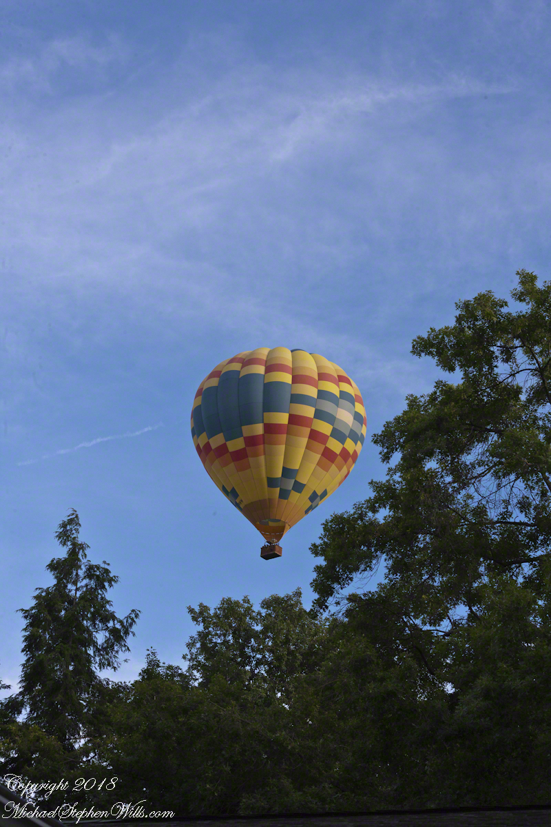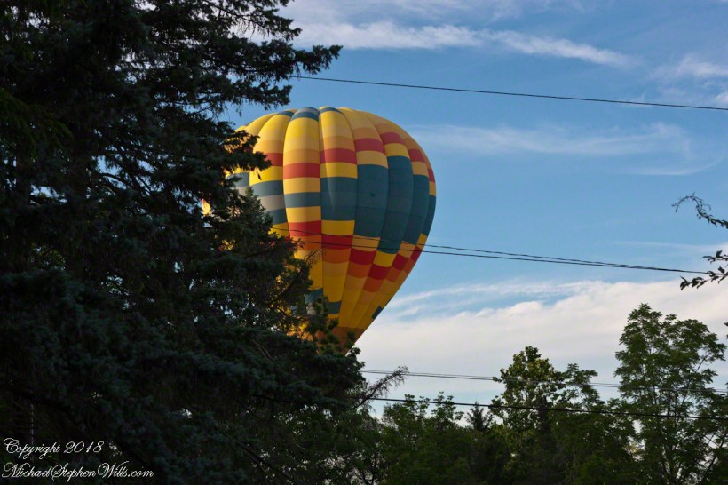 These past years, hot air balloons started launching from West Hill and, when the breeze (balloons never launch in winds, as far as I know) is right the balloon and gondola full of passengers drift in the direction of our home. More than one time, directly overhead, I estimate 200 feet away. We could clearly see and converse with the passengers. What fun.