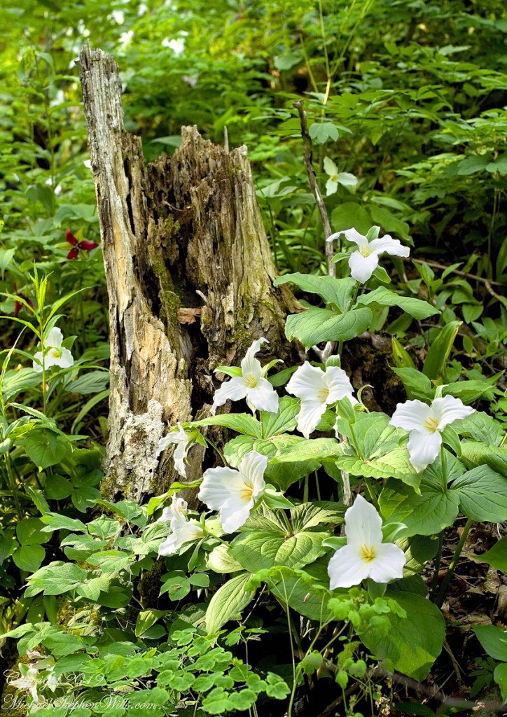 The red trillium even has a rare white-petaled form4 easily mistaken for its white-flowered cousin. I linger a bit longer among these graceful “trinity flowers,” my questions answered and my appreciation deepened. As I turn to go, a sunbeam breaks through and illuminates one last trillium by the trail, its white petals touched with pink. I smile, grateful for the chance to witness this woodland wonder.