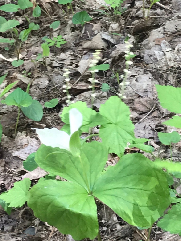 - White form of red trillium: Trillium erectum (normally red) has a variety with white petals, classified as T. erectum var. album, which can be mistaken for a white trillium at a glancemidatlanticnature.blogspot.com.