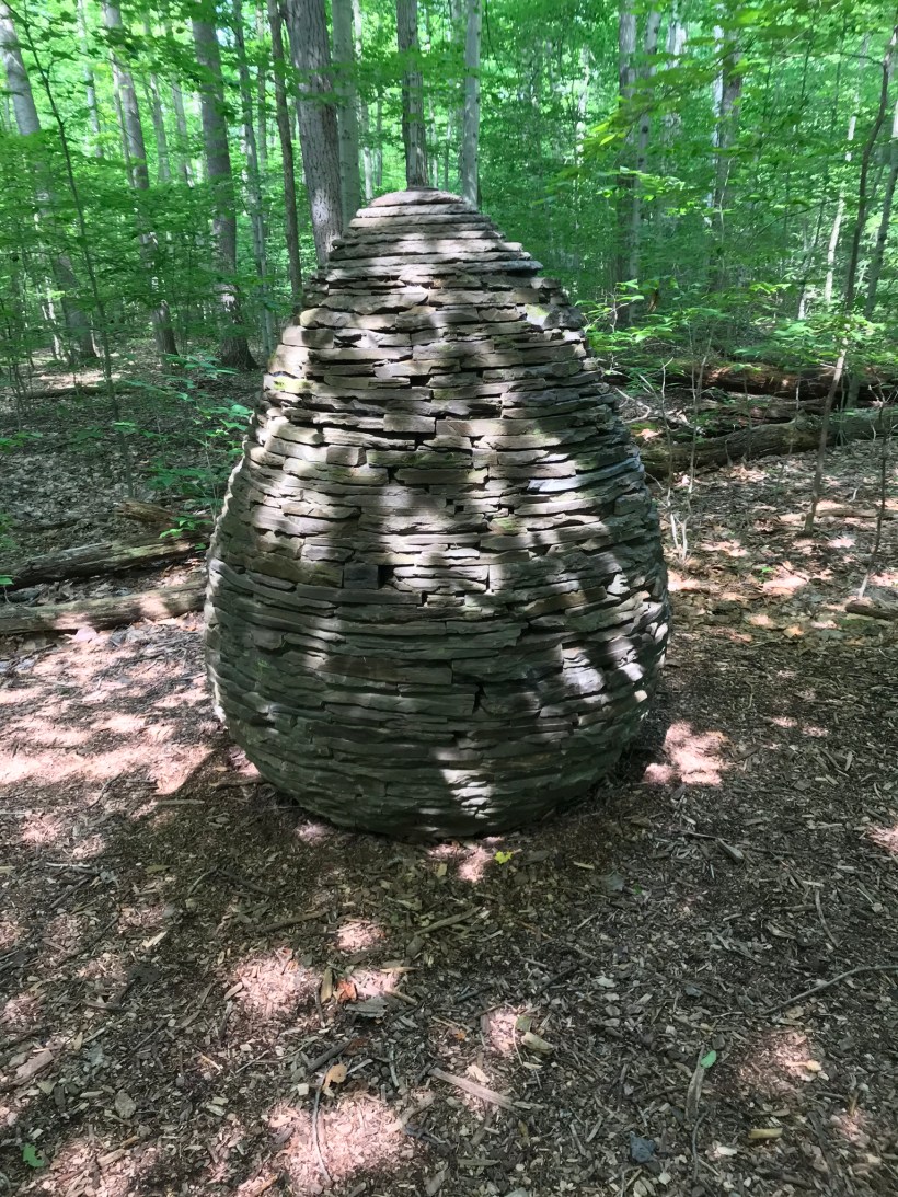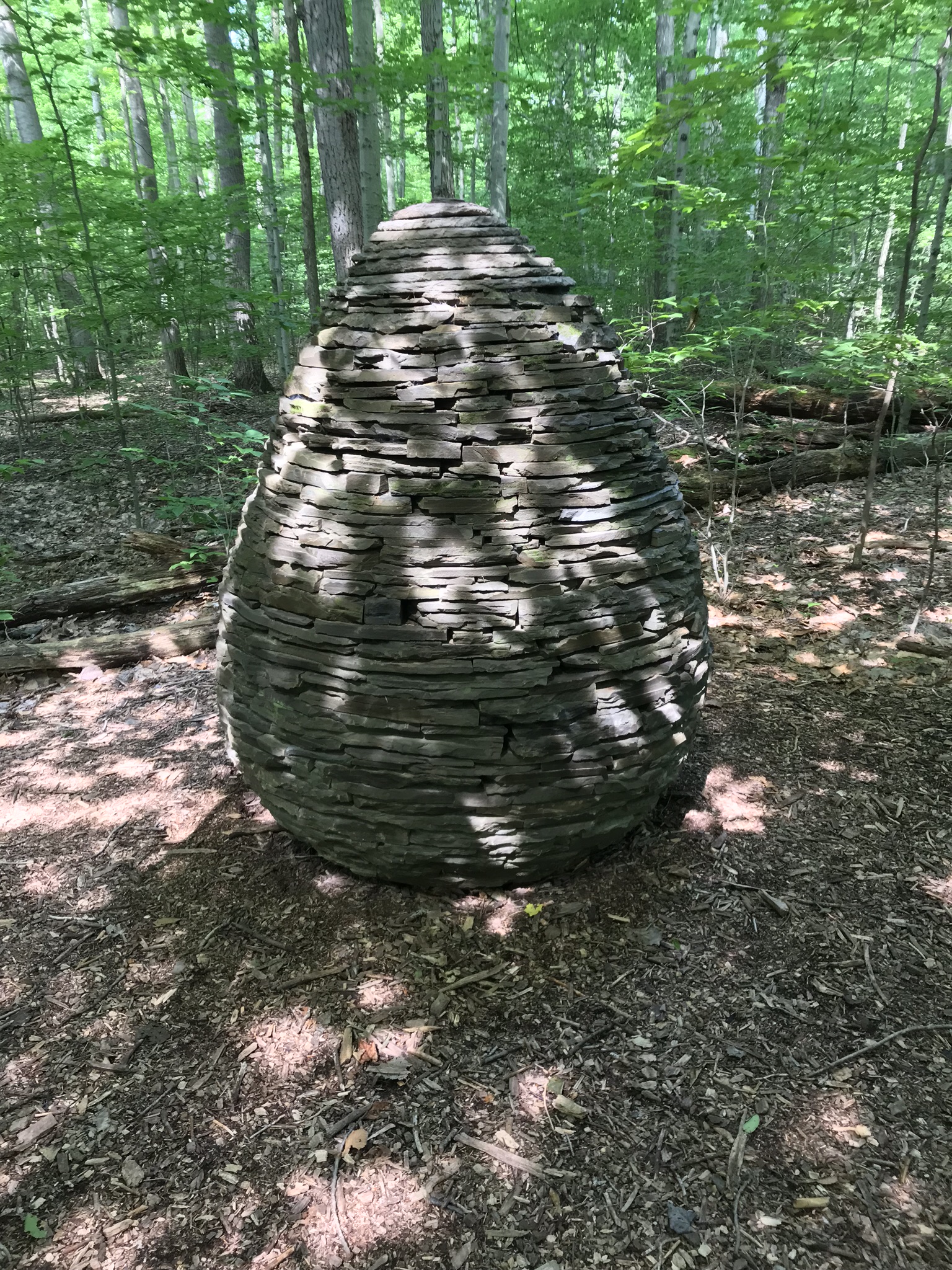Off the boardwalk, we took a short detour to view an elaborate cairn built of local rock by a famous artist. The dappled sunlight across the surface is especially enjoyable.