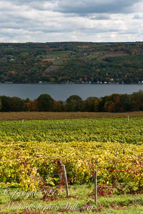 Afterwards, Pam and I made it up to the Dr. Frank Winery for a tasting followed by dinner at a local restaurant. Here is a photograph from the same viewpoint, using the “zoom” setting of my Sony DSLR A700. The view is more interesting than the winter shot of “Keuka Lake Winter I” from the autumn clouds and the burst of late day sun on the eastern lake shore.