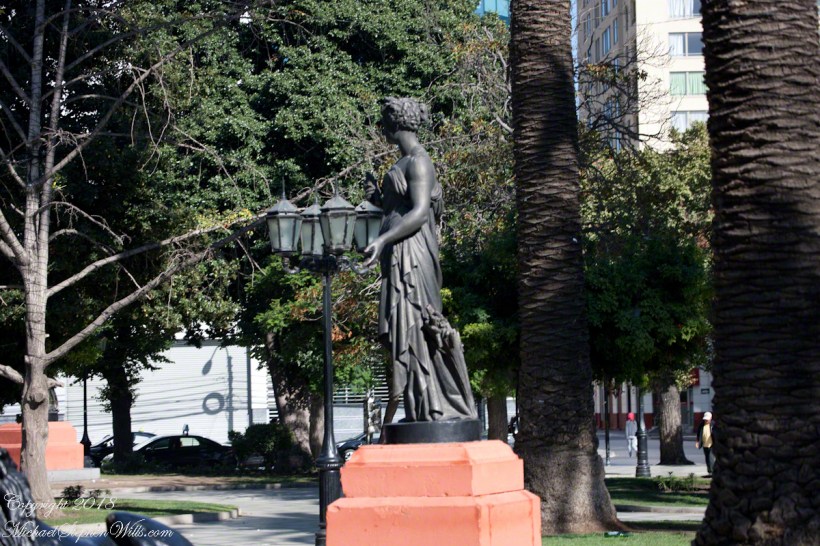 The subsequent prosperity allowed reclamation of the land of Plaza Victoria from the sea. For example, in my post Valparaiso Connections V we learned how French immigrants arrived and developed Central Valley wineries in the 19th century. Around the time of the victory Chacobuco Street was built adjacent to the plaza on reclaimed land, the Plaza Victoria was pulled from the sea.