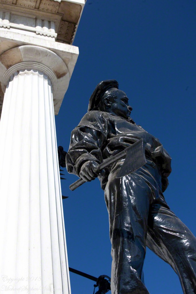 This monument commemorates the destruction of the Chilean warship Esmeralda. At the monument peak is Arturo Prat Chacón, captain of the Esmeralda who perished with his wooden ship. He and the crew were blockading the then Peruvian port of Iquique along with another ship, the Covadonga.